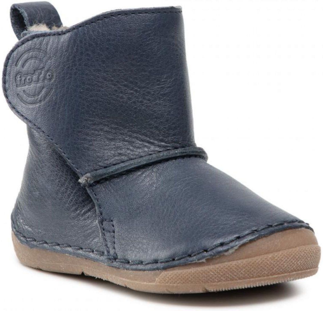 Kozaki Froddo Jr G2160072 Właściwości Kozaczki firmy Froddo Buty zimowe dla dzieci wyróżniają się cholewką z gładkiej skóry naturalnej o wodoodpornych właściwościach. Miękka wyściółka ze skóry dba o komfort stopy, a rzep ułatwia zakładanie i zdejmowanie. Ciekawy design i wygoda wyróżnia te botki uniwersalne do każdej stylizacji. Wnętrze wypełnione ciepłym kożuszkiem Kolor granatowy