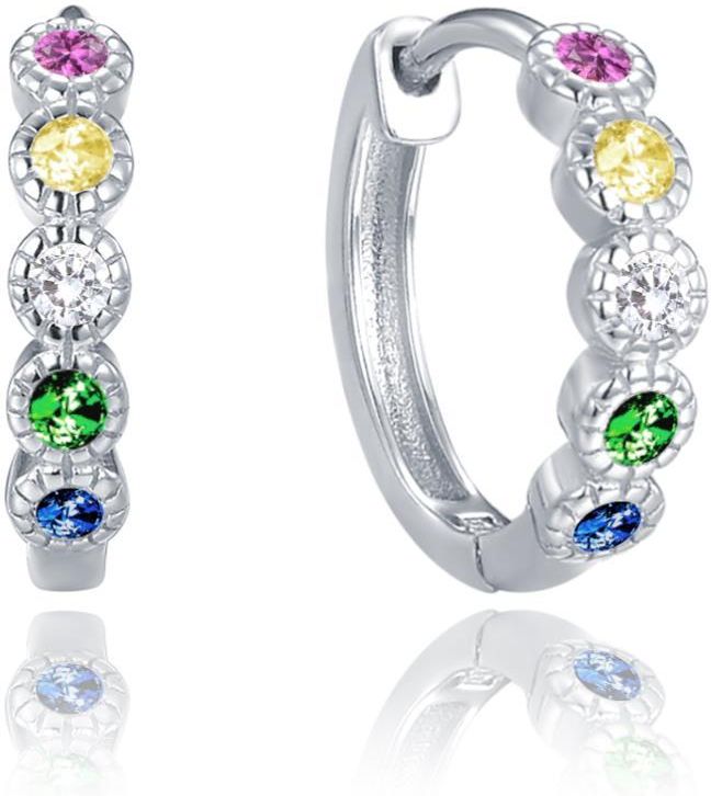 MINET Kolczyki srebrne pierścienie z wielokolorowymi cyrkoniami Kościerzyna