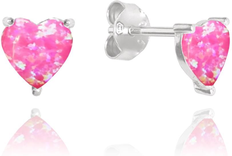 Minet Srebrne kolczyki SERCA z różowymi opalem Kościerzyna