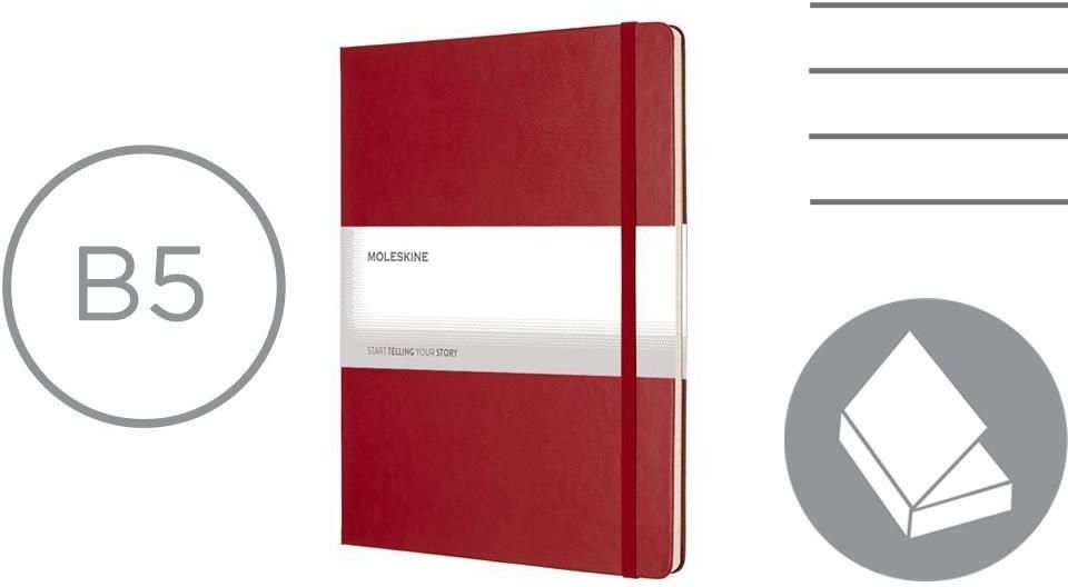 Notatnik XL (ok. B5) MOLESKINE, twarda okładka, 192 strony w linie, kieszeń wewnętrzna, zakładka i elastyczna opaska do zamykania