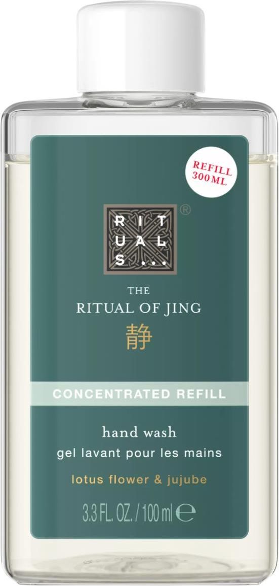 Pora ulepszyć swój płyn do mycia rąk? Wybierz opakowanie uzupełniające płynu do mycia rąk The Ritual of Jing od Rituals. Kupując ten koncentrat płynu, pomagasz zmniejszyć zużycie materiałów opakowaniowych. Wlej koncentrat do dozownika, dodaj wodę i wstrząśnij, aby uzyskać płyn do mycia rąk o wyjątkowym zapachu. Delikatnie oczyszcza, zawiera mieszankę kwiatów lotosu i jujuby, pozostawiając dłonie miękkie i czyste.Kwiat lotosu i jujuba.Bogata w składniki łagodzące stres kolekcja produktów do pielęgnacji ciała The Ritual of Jing pomaga odnaleźć spokój ducha. Kwiat lotosu zawarty w tych produktach działa kojąco i odżywia skórę. W ich skład wchodzą również nasiona jujuby, wykorzystywane w tradycyjnej medycynie chińskiej do łagodzenia stresu i uspokajania umysłu. Elegancki kwiatowy zapach działa relaksująco.Dlaczego jest tak wyjątkowy? Kojący kwiatowy zapach; innowacyjna formuła uzupełniania; wystarczy dodać wodę; odpowiedni dla wegan.