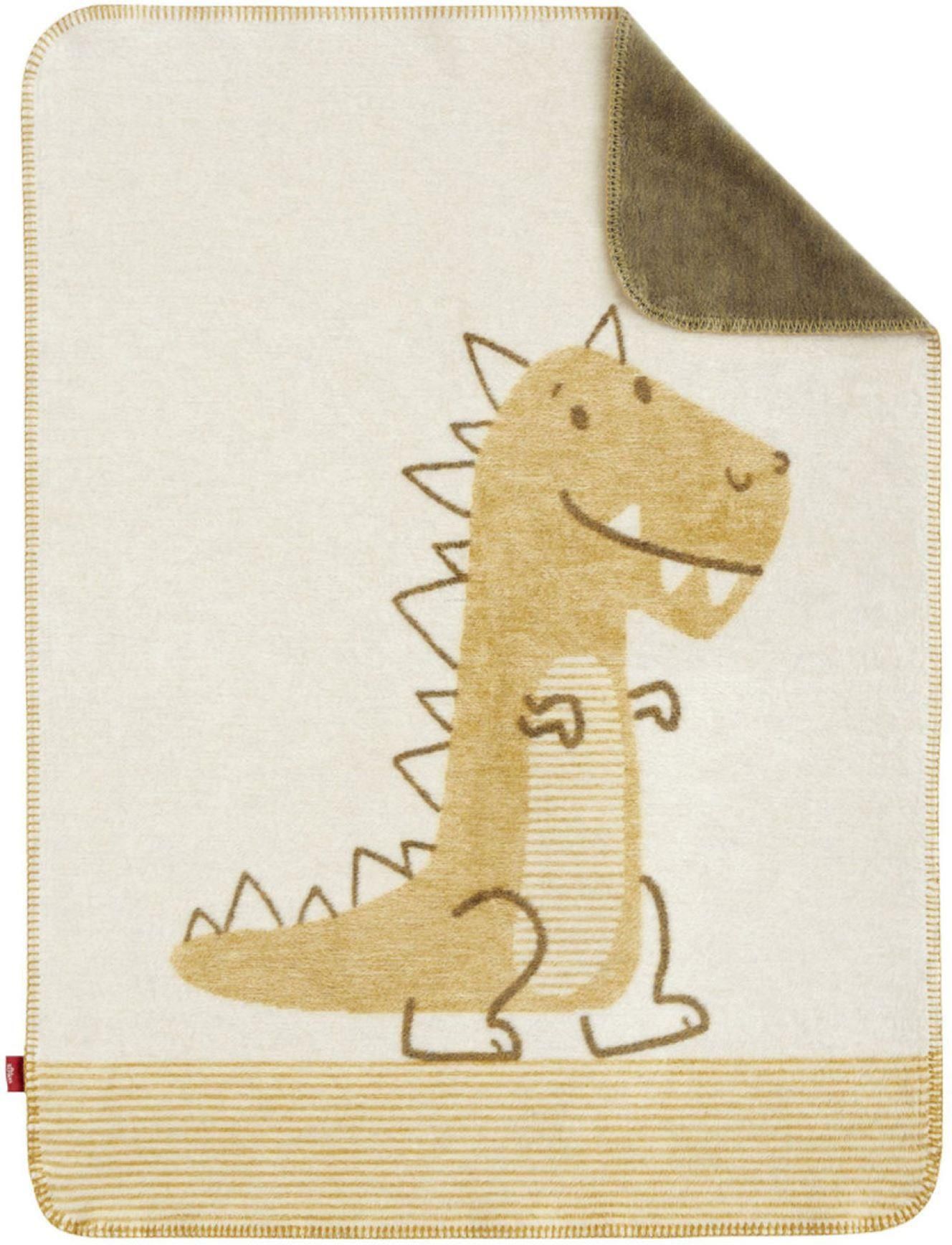 Koc dziecięcy s.Oliver 2099-390 Przytulny i delikatny w dotyku żakardowy kocyk dziecięcy marki S.Oliver, o numerze 2099. Wzór w dinozaura , utrzymany w odcieniach brązu i beżu, wykończony ściegiem dzierganym. Skład 58% bawełna 35% poliakryl (dralon) 7% poliester Zasady pielęgnacji Prać w 40 st. Nie prasować Można suszyć w suszarce bębnowej na niskich obrotach
