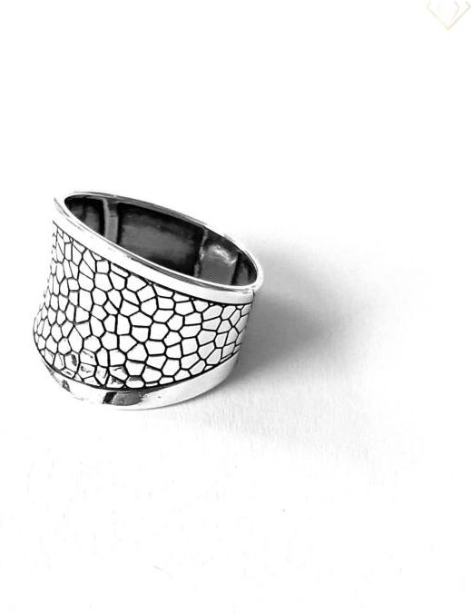 Bardzo efektowny srebrny pierścionek ze zdobieniami w formie nieregularnych żłobień. Duży, srebrny, oksydowany pierścionek został wykonany z ogromną precyzją, przez co jest produktem najwyższej jakości. Do produkcji użyto srebra próby 925. Oksydowanie chroni srebro przed korozją. Ten wyjątkowy srebrny pierścionek to świetny pomysł na prezent dla bliskiej osoby. Poznaj nasze pozostałe produkty i stwórz idealny zestaw! Zabłyśnij z biżuterią Susetti! Rozmiar pierścionków jest podawany na podstawie trzpienia miarowego jubilerskiego