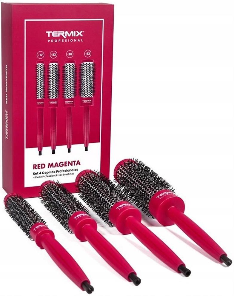 TERMIX RED MAGENTA ZESTAW SZCZOTEK DO WŁOSÓW Termix prezentuje nowy limitowany zestaw swoich najbardziej kultowych szczotek. Ta edycja 4 szczotek jest prezentowana w Pantone Color 2023, „Viva Magenta”. Czerwonawy odcień, który emanuje pozytywizmem i siłą. Gama szczotek Termix Professional oferuje narzędzia fryzjerskie najwyższej jakości z trzyletnią gwarancją. Oferuje wypolerowane i błyszczące suszenie w zasięgu każdego. Zostały zaprojektowane z włókien nylonowych, które mają pamięć, aby odzyskać swój pierwotny kształt po wystawieniu na działanie ciepła, czyli nie ulegają uszkodzeniom i odkształceniom. Profesjonalna szczotka Termix jest idealna do pracy z każdym rodzajem fryzury. Im większa średnica tuby, tym łatwiej ułożysz długie włosy lub nadasz fryzurze większej objętości. Ponadto jego aluminiowy korpus pozwala na maksymalne zatrzymanie ciepła i skraca czas schnięcia. Zestaw 4 szczotek w kolorze Pantone 2023, Viva Magenta. Mocny i odważny ton; potężna czerwień, która pławi się w czystej radości. Ta edycja obejmuje średnice: 17, 23, 28 i 32. Rączka szczotek Termix Professional została wykonana z polipropylenu, bardzo wytrzymałego i nieprzywierającego materiału, który zapobiega przyklejaniu się włosów do rączki. Ponadto posiada szpikulec na dole, aby móc rozdzielać kosmyki podczas stylizacji, oszczędzając czas i poprawiając komfort. Zaprojektowany z włókna wysoce odpornego na ciepło i o największej zdolności do powrotu do początkowej sztywności. Ułożenie włókien w sposób prostopadły umożliwia również lepszą penetrację włosa między nimi i lepszy chwyt. W szczotce Termix Professional wyróżnia się proces perforacji na aluminiowej płytce: kontur perforacji jest wypolerowany, aby zapobiec uszkodzeniu włosa przez wszelkie zadziory, które mogą pozostać podczas procesu produkcyjnego. Montaż szczotek odbywa się za pomocą ciepła. Dzięki temu procesowi wytwarzana jest ekspansja, która zapewnia idealne połączenie wszystkich składników, zapewniając w ten sposób jej ekstremalną odporność i trwałość.