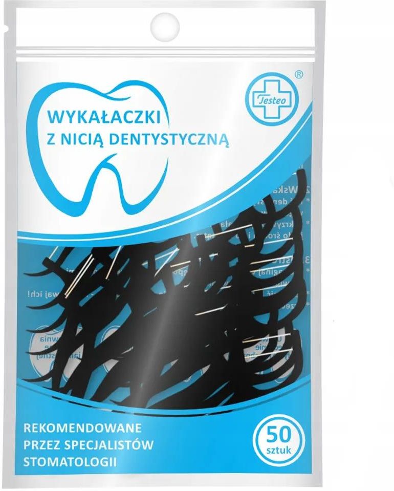 Testeo Testeo, wykałaczki z nicią dentystyczną, czarne, 50 sztuk Kościerzyna
