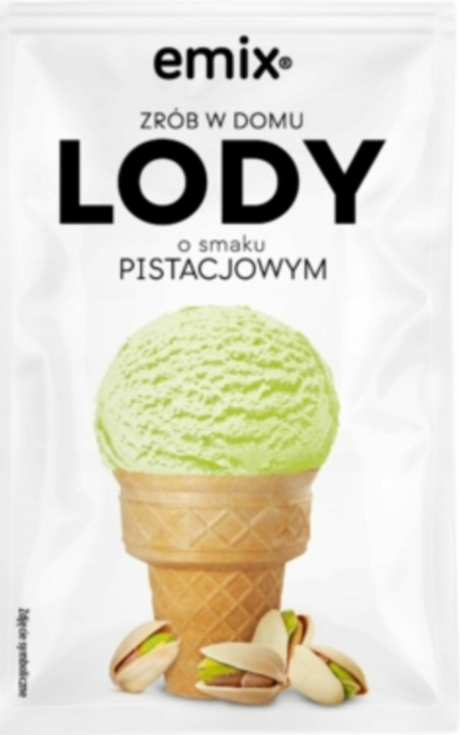 EMIX Lody w proszku o smaku pistacjowym (zrób w domu) 60gSposób przygotowania:1. Do wysokiego naczynia wlać 200 ml (niepełna szklanka) mleka schłodzonego do temp. poniżej 10 stopni. Zawartość torebki wsypać do mleka i miksować przez 3 min. 2. Przygotowaną masę przełóż do miseczek i zamrażaj przez 3-4 godziny . Pozwól sobie na chwilę zapomnienia i rozkoszuj się słodkim smakiem pistacji. Spróbuj teraz i doświadcz czystej przyjemności!