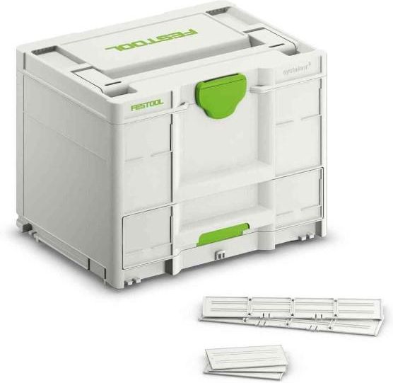 Systainer³ SYS3-COMBI M 287 NOWOŚĆ FESTOOL 577766 Nr katalogowy 577766 Na górze Systainer Na dole Sortainer. Inteligentne połączenie Systainera³ i Sortainera³: Systainer³ Combi umożliwia transport maszyn i elementów wyposażenia umieszczonych w jednym Systainerze. W górnej części można bezpiecznie przechowywać elektronarzędzia i narzędzia ręczne; w dolnej części dostępne jest miejsce na wyposażenie. Szufladę można indywidualnie podzielić za pomocą przegródek lub dostępnych osobno wyjmowanych pojemniczków – dzięki czemu drobne elementy, takie jak gwoździe, kołki czy wkręty, są zawsze łatwo dostępne. Wszystko w zasięgu ręki – w celu zapewnienia większego porządku i oszczędności czasu w miejscu pracy. Praktyczne rozwiązanie: kombinacja Systainera³ M i przestronnej szuflady W zasięgu ręki: przednia szuflada jest dostępna w każdej chwili, nawet w wieży Systainerów Elastyczność: możliwość indywidualnego skonfigurowania szuflady przy użyciu przegródek i dostępnych osobno wyjmowanych pojemniczków Mobilność: dzięki wózkowi na Systainery SYS-RB lub wózkowi transportowemu SYS-Roll. Kompatybilność: pasuje do całego systemu Systainerów Festool – łatwe łączenie i transport. kompatybilność z zestawem wyjmowanych pojemniczków 50x50/50x100x68 (578056) w szufladzie brak kompatybilności z zestawem wyjmowanych pojemniczków 60x60/120x71 3xFT (201124) kompatybilność ze wyjmowanymi pojemniczkami 204858, 204859, 204860, 204861 w szufladzie Wymiary (dł. x szer. x wys.): 396 x 296 x 280 mm Wymiar ze stopkami (dł. x szer. x wys.): 396 x 296 x 287 mm Wymiary wewnętrzne górnej przegródki (dł. x szer. x wys.): 389 x 287 x 140 mm Wymiary wewnętrzne szuflady (dł. x szer. x wys.): 343 x 271 x 66 mm Obciążenie: 20,00 kg Nośność (w połączeniu): 40,00 kg Dopuszczalne obciążenie pokrywy: 100,00 kg Ciężar produktu bez wyposażenia: 4,30 kg Elastyczny podział Szuflady można przedzielić dołączonymi przegródkami w zależności od indywidualnych potrzeb. Dostępne osobno wyjmowane pojemniczki w różnych rozmiarach oferują jeszcze większą elastyczność – w celu zapewnienia maksymalnego porządku i oszczędności czasu w miejscu pracy. Po prostu praktyczne. Dolną szufladę można przedzielić przegródkami w zależności od indywidualnych potrzeb. Dostępne osobno wyjmowane pojemniczki w różnych rozmiarach zapewniają jeszcze większą elastyczność – dzięki czemu drobne elementy można mieć zawsze w zasięgu ręki. 100% mobilności. „Skumulowany” transport Systainer³ Combi to połączenie zalet Systainera³ i Sortainera³: Systainer na górze oferuje miejsce na narzędzia, a szuflada pod spodem może służyć do przechowywania dopasowanych elementów wyposażenia. Zawsze w zasięgu ręki Dzięki praktycznym szufladom z przodu użytkownik ma dostęp do wszystkich elementów wyposażenia w dowolnym momencie – nawet gdy Systainer³ Combi jest ustawiony w wieży. Mobilny porządek Transporter SYS-Roll oraz wózek na Systainery SYS-RB sprawiają, że Systainery Combi są jeszcze bardziej mobilne – w celu zapewnienia szybkiego transportu w miejscu pracy lub na placu budowy. Porządek z systemem Systainery³ Combi są ze sobą kompatybilne i można je łączyć ze wszystkimi Systainerami poprzednich generacji, odkurzaczami mobilnymi i wieloma innymi elementami wyposażenia systemowego. Najważniejsze zastosowania Łatwy, „skumulowany” transport narzędzi i wyposażenia Kompatybilność ze wszystkimi generacjami Systainerów, odkurzaczami mobilnymi i innymi elementami wyposażenia systemowego Wszystko pod ręką Systainer³ Combi umożliwia transport maszyn i elementów wyposażenia w „skumulowany” sposób. W Systainerze³ na górze znajduje się miejsce na elektronarzędzia i narzędzia ręczne, natomiast w szufladzie poniżej można w uporządkowany sposób przechowywać odpowiednie elementy wyposażenia. Ze stacjonarnego warsztatu do miejsca użytkowania – Systainery³ zapewniają jeszcze większą mobilność. W celu ułatwienia transportu możliwe jest zintegrowanie Systainera³ Combi z wyposażeniem pojazdu bott vario3.
