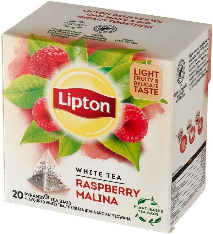 Herbata biała ekspresowa aromatyzowana Lipton Malina 20x1,5g Biała herbata w kompozycji z kuszącymi owocami maliny. Starannie wyselekcjonowane i suszone pączki herbaty oraz maliny kreują niezwykle subtelny smak, który zapewnia wyjątkowe doznania. Nasze torebki piramidki umożliwiają pełne wydobycie intensywności smaku. To czysta przyjemność! PARAMETRY Czas parzenia: 2-3 min Ilość wody do przygotowania: 200-250 ml Opakowanie: 30g Rodzaj herbaty: Herbata Biała aromatyzowana Typ herbaty: Ekspresowa MARKA LIPTON Historia marki Lipton sięga XIX wieku, gdy herbata nie była dobrem tak łatwo dostępnym, jak dziś. Właśnie wtedy Sir Thomas Lipton postanowił sprawić, aby każdy mógł cieszyć się jej smakiem w najlepszym wydaniu. Ta idea przyświeca nam także teraz i dlatego tworzymy wysokiej jakości mieszanki, które powstają ze starannie wyselekcjonowanych składników. Ale Lipton to nie tylko herbata. To doświadczanie prawdziwej przyjemności zawsze wtedy, gdy masz na to ochotę. W kolekcji Lipton znajdziesz klasyczne czarne herbaty, zielone herbaty, mieszanki skomponowane z dużych liści i aromatycznych dodatków oraz wyśmienite napary. Spróbuj i przekonaj się, jak smakuje przyjemność!
