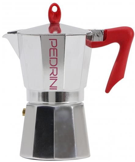Kawiarka Aluminiowa 1 TZ Srebrny - Pedrini Kaffettiera Pedrini Pedrini Kaffettiera Kawiarka Aluminiowa Kaffettiera to kawiarka, która zapewni nam tradycyjny smak kawy. Firma Pedrini wprowadza na rynek szeroką gamę aluminiowych kawiarek i naczyń kuchennych, by wydobywać aromaty i smaki, które są częścią każdej kultury. Praktyczna i ekskluzywna kawiarka, z oryginalną rączką i uchwytem, jest rezultatem konkretnego projektu. Kawiarka Kaffettiera wykonana jest w całości z błyszczącego, polerowanego aluminium, połączonego z wygodnym, nieślizgającym się uchwytem oraz rączką, wytrzymuje temperaturę do 210°C. Uszczelki wykonane są z bezpiecznego dla zdrowia silikonu. Posiada zawór bezpieczeństwa. Odpowiednia na każdą kuchenkę grzewczą, z wyjątkiem indukcyjnej. Pedrini Kaffettiera kawiarka: W rozmiarach: 1/2, 1, 2, 3, 6, 9 i 12 tz. Cechy kawiarki Kaffettiera: Silikonowe uszczelki bezpieczne dla zdrowia. Aluminiowy korpus z bezpiecznego dla zdrowia aluminium Zawór bezpieczeństwa. Ergonomiczny kształt. Opatentowany ekskluzywny design. Pedrini Kaffettiera Kawiarka Aluminiowa Kaffettiera to kawiarka, która zapewni nam tradycyjny smak kawy. Firma Pedrini wprowadza na rynek szeroką gamę aluminiowych kawiarek i naczyń kuchennych, by wydobywać aromaty i smaki, które są częścią każdej kultury. W rozmiarach: 1/2, 1, 2, 3, 6, 9 i 12 tz.