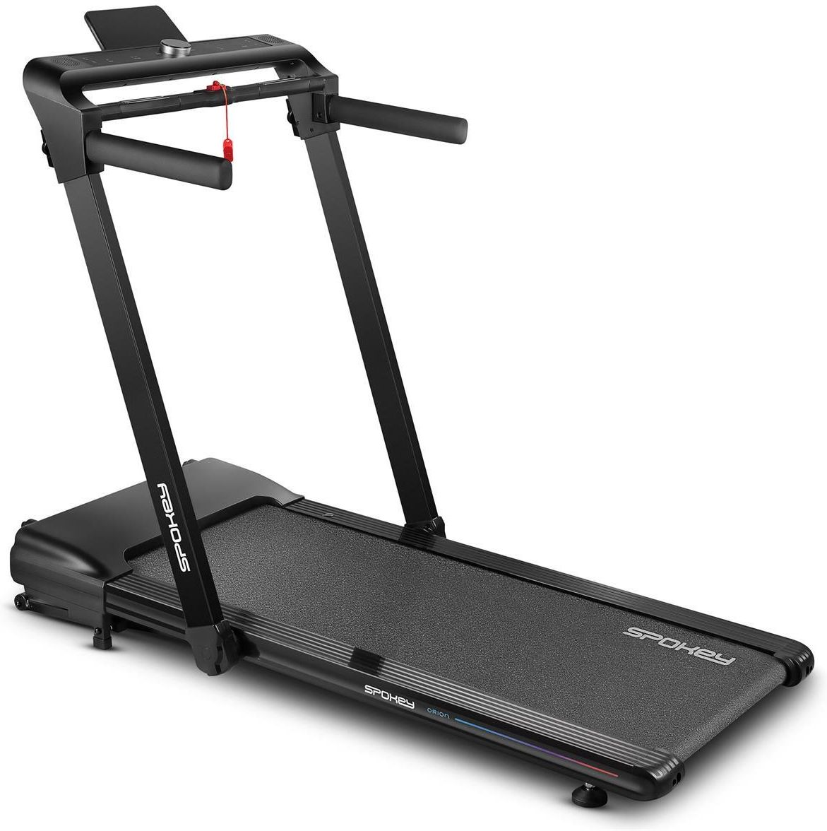 Bieżnia elektryczna sterowana gestem SPOKEY Orion Spokey ORION – nowoczesna bieżnia elektryczna z kontrolą gestami Spokey ORION to innowacyjna bieżnia domowa, która podnosi komfort i efektywność treningu cardio. Dzięki funkcji sterowania gestami możesz płynnie regulować prędkość bez sięgania do konsoli czy pilota – wystarczy prosty ruch dłoni. Automatyczna regulacja nachylenia w zakresie 15 poziomów umożliwia precyzyjne dopasowanie intensywności ćwiczeń, a 15 gotowych programów treningowych pozwala trenować różnorodnie i skutecznie, niezależnie od poziomu zaawansowania. To idealne rozwiązanie dla osób ceniących nowoczesną technologię, wygodę i efektywny trening w domu. Najważniejsze zalety bieżni Spokey ORION Sterowanie prędkością gestami Intuicyjna, bezdotykowa zmiana prędkości pozwala zachować pełną płynność biegu i maksymalną wygodę użytkowania – szczególnie przy dynamicznym treningu. Automatyczne nachylenie – 15 poziomów Regulacja kąta nachylenia umożliwia przejście od spokojnego marszu po płaskim terenie do intensywnego biegu pod górę, zwiększając zaangażowanie mięśni i spalanie kalorii. 15 programów treningowych Zróżnicowane tryby ćwiczeń dopasowane do początkujących i zaawansowanych użytkowników. Każdy program składa się z 20 segmentów o zmiennej prędkości i nachyleniu, co wspiera rozwój kondycji i wytrzymałości. Funkcja pauzy Pozwala chwilowo przerwać trening bez utraty ustawień i wyników. Po wznowieniu bieżnia kontynuuje sesję dokładnie od momentu zatrzymania. Pomiar pulsu Wbudowane sensory tętna pomagają kontrolować intensywność wysiłku i dopasować tempo do indywidualnych celów treningowych. Klucz bezpieczeństwa Zapewnia natychmiastowe zatrzymanie pasa w sytuacji awaryjnej, zwiększając bezpieczeństwo podczas ćwiczeń. Łączność Bluetooth i głośniki Możliwość połączenia z aplikacją Fitshow oraz odtwarzania muzyki bezpośrednio z bieżni uprzyjemnia każdy trening. Spokey ORION łączy nowoczesny design, funkcjonalność i zaawansowane rozwiązania treningowe. Sterowanie gestami, szeroki zakres nachylenia oraz bogaty wybór programów sprawiają, że domowy trening staje się wygodny, bezpieczny i maksymalnie skuteczny – niezależnie od pogody i Twojego poziomu formy.