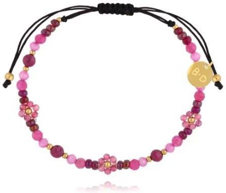 Bransoletka By Dziubeka BMT0273 bransoletka na sznurku z kamieniami. Surowiec: stal szlachetna. Kolor surowca: złoty. Kolor sznurka: czarny. Elementy: koraliki Miyuki, jadeity barwione, rubiny. Wielkość elementów: 0,30 cm – 0,66 cm. Długość bransoletki: od 14 cm do 24 cm.