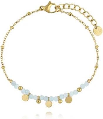 Bransoletka By Dziubeka BPA0473 Surowiec: stal szlachetna. Kolor surowca: złoty. Kamienie: amazonity. Wielkość kamieni: 0,28 cm. Długość bransoletki: 16 cm + 3 cm łańcuszek wydłużający. Rodzaj zapięcia: karabińczyk.