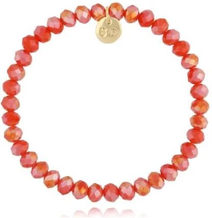 Bransoletka By Dziubeka BCY0404 Surowiec: mosiądz. Elementy: szklane kryształki. Kolor kryształków: pomarańczowy. Wielkość kryształków: 0,56 cm. Średnica bransoletki: 5,30 cm bez rozciągania gumki.