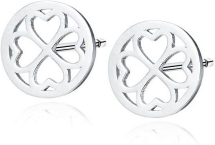 Kolczyki wykonane ze srebra próby 925. Model ten stanowi ciekawy wzór czterolistnej koniczynki umieszczonej wewnątrz kółka. Kolczyki są w całości w srebrnej kolorystyce i cechują się wyjątkową delikatnością oraz precyzją wykonania nawet w najmniejszym szczególe. Para kolczyków zapinania jest na wygodny sztyft. Średnica kolczyków: 9mm Kolor: Srebrny Materiał: Srebro próby 925 Waga: 1,0g Zapięcie: Sztyft