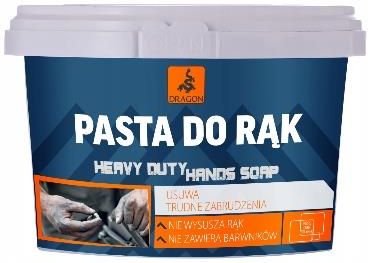 DRAGON pasta do rąk heavy duty 500g Zastosowanie Profesjonalny preparat do czyszczenia i pielęgnacji rąk. Zalecany do stosowana w zakładach przemysłowych, warsztatach przy różnego rodzaju pracach mechanicznych, hydraulicznych, konserwatorskich, itp. Dzięki neutralnemu pH i dodatkowym substancjom nawilżającym, nie powoduje podrażnienia skóry, nawet przy częstym stosowaniu. Właściwości Skuteczna i wydajna w użyciu pasta do mycia silnie zabrudzonych rąk. Zawiera mikrogranulki i składniki aktywne ułatwiające usuwanie nawet trudnych zabrudzeń, tj. smary, oleje, tłuszcze itp. Formuła wzbogacona w środki nawilżające dla ochrony i pielęgnacji skóry. Posiada neutralne pH. Pozostawia dłonie czyste i pachnące.