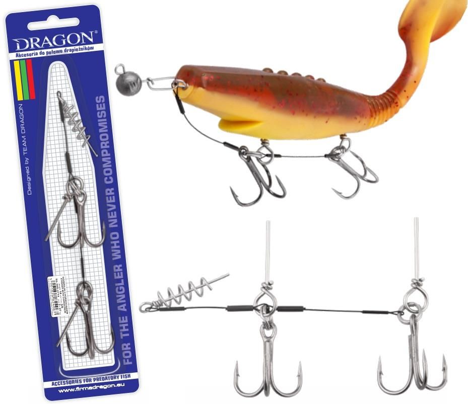 DRAGON SYSTEMIK DO ZBROJENIA DUŻYCH GUM 10 CM - 14 KG KOTWICA NR 1 Opis produktu: Nowoczesne systemiki pozwalające w najbardziej efektywny sposób uzbroić gumyo wielkości od 12,5 do 25 cm. (7, 8, 9, 10, 11, 12, 13.5, 15 cm) i trzy wielkości kotwic umożliwią precyzyjne dopasowanie do każdego typu i kształtu przynęty. Bardzo ostre kotwiczki DRAGON V-POINT zapewnią skuteczne zacięcie a przypony A.F.W. Surflon 1x7 (o wytrzymałościach 14, 20 i 27 kg, w czarnej otulinie nylonowej) dobierzesz do każdego holu.