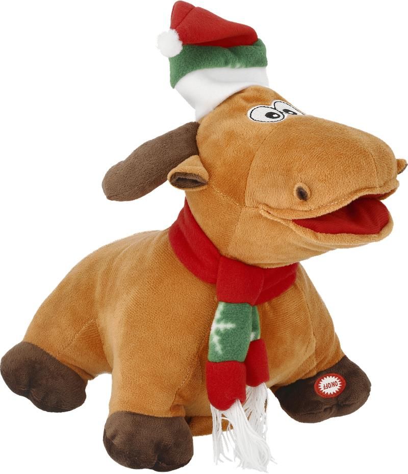 Świąteczny łoś tańczący w takt muzyki! Włącznik na kopytku. Zasilanie akumulatorowe.