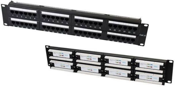 LN-PP19-2U-48P-C6 - Patch panel 48 portowy UTP, 2U, Cat.6, montaż RACK 19" Patch panel krosowniczy LN-PP19-2U-48P-C6 przeznaczony do montażu w szafach RACK 19” stanowi zakończenie okablowania strukturalnego budynku. Znacząco wpływa na estetykę instalacji a także chroni i ułatwia zarządzanie okablowaniem. Posiada 48 ponumerowanych portów RJ45 w standardzie Cat.6 z polami opisowymi ułatwiającymi instalację. CECHY PRODUKTU Wysokość 2U Materiał stal Montaż szafy RACK 19" Ilość gniazd 48 Kategoria 6 Wspornik tak Ekranowanie nie Kolor czarny