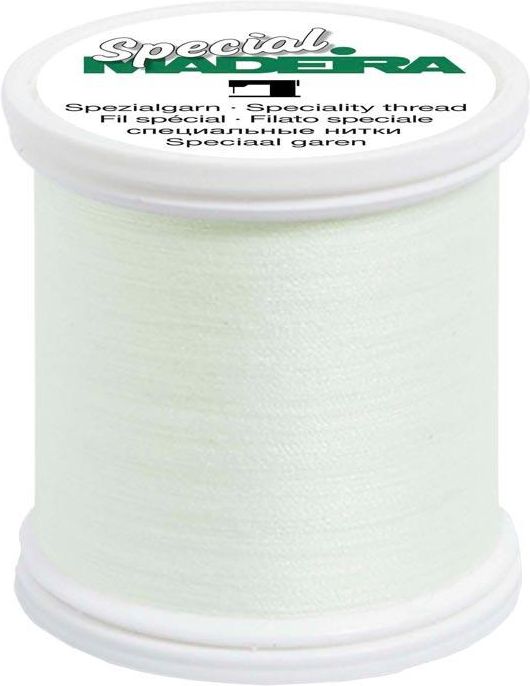 Nić hafciarska Madeira 40, fluorescencyjna, 100 m Nić hafciarska Madeira Halloween 40 (100 m) Najwyższej jakości uniwersalna nić hafciarska z rzadko spotykanym efektem świecenia w ciemności. Po odpowiednio długim naświetleniu, nić oddaje w ciemności światło zielonej barwy. Nitka emituje promienie UV. Czas trwania efektu i jego intensywność zależy od czasu naświetlania. Doskonale sprawdza się zarówno do haftu, jak i do szycia maszynowego. MADEIRA 9661