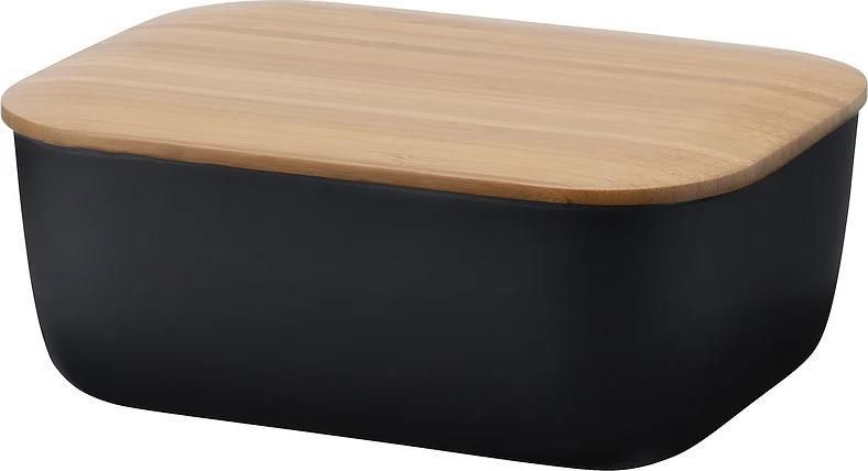 Główne zalety: elegancka maselniczka w kolorze czarnym, która doskonale uzupełni każdy stół śniadaniowy zarówno w nowoczesnej, jak i tradycyjnej kuchni nadaje się do przechowywania masła, tłuszczów roślinnych i innych produktów do smarowania, które zachowują świeżość i smak lakierowana bambusowa pokrywa służy jako stylowa pokrywa i praktyczna mata do serwowania dzięki przemyślanym wymiarom, pojemnik może pomieścić większość powszechnie dostępnych rozmiarów masła minimalistyczny design jest wynikiem pracy niemieckiego duetu projektantów Jehs & Laub dolny pojemnik wykonany z wysokiej jakości tworzywa PBT jest trwały i można go myć w zmywarce, co zapewnia łatwą konserwację materiał, z którego wykonany jest pojemnik, nie pochłania zapachów ani barwników, dzięki czemu nadaje się również do żywności aromatyzowanej Maselniczka pasuje do innych produktów z kolekcji BOX-IT, np. popularnego chlebak o tym samym wzorze kompaktowy kształt ułatwia przechowywanie w lodówce i przenoszenie na stół lub piknik wymiary brytfanny do masła zapewniają efektywne wykorzystanie przestrzeni przy zachowaniu wystarczającej pojemności połączenie bambusa i plastiku tworzy estetycznie zrównoważony kontrast naturalnego i nowoczesnego materiału Dodatkowe informacje: wymiary: 15,5 x 6 x 11,5 cm materiał: PBT plastikowy, lakierowany bambus można myć w zmywarce (z wyjątkiem bambusowej pokrywy)