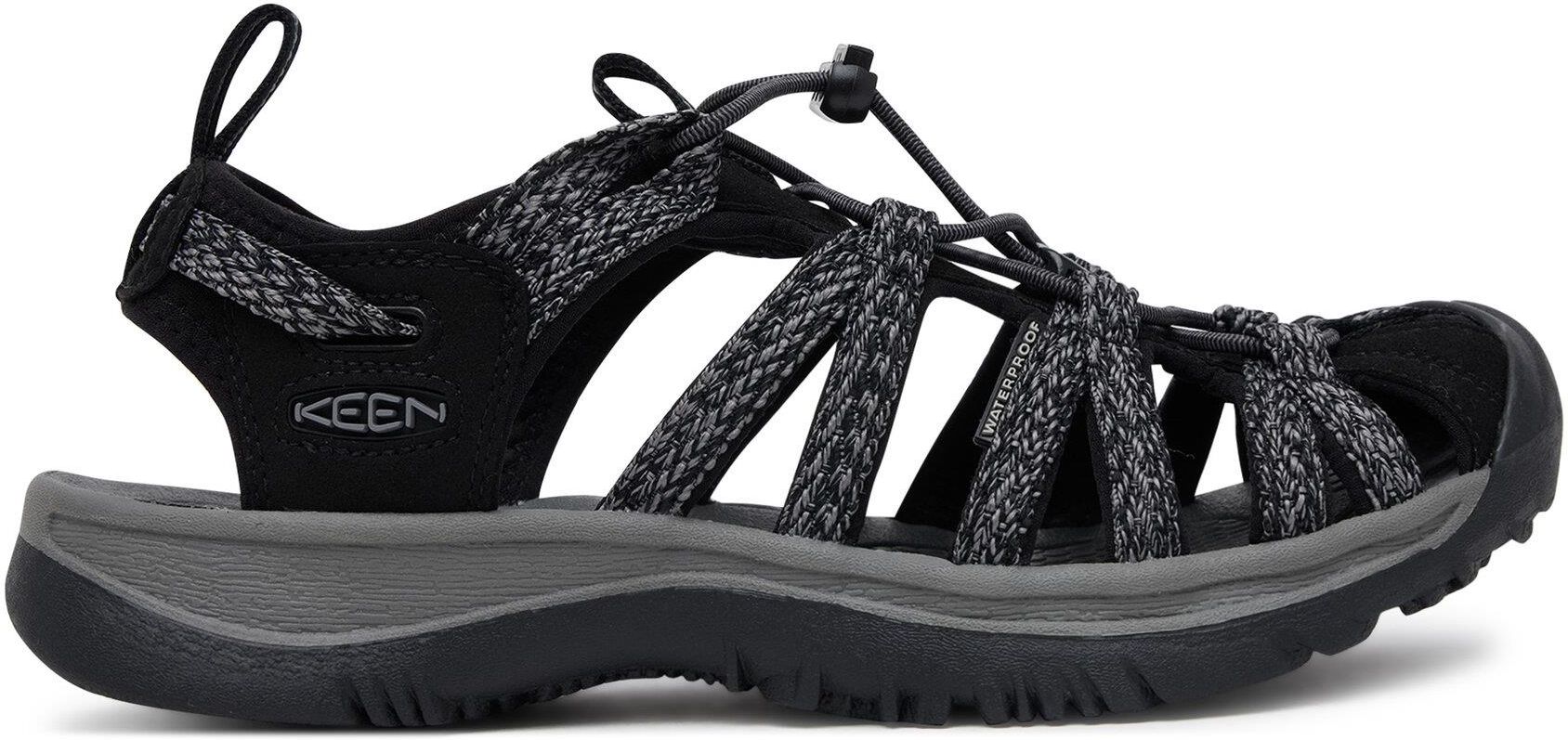 KEEN Women's Whisper Closed Toe Sport Sandals, Black/Steel Grey, 3 Opis Description Elastic cording gives this lightweight performance sandal a secure fit, easy to adjust in or out of the water. The washable upper makes cleaning easy, and the cushioned footbed provides comfort on the go. Weighing …