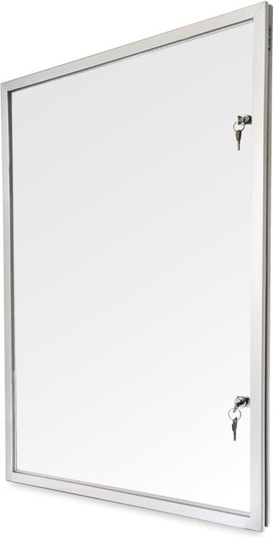 Gablota ogłoszeniowa TENDENCE magnetyczna Gablota informacyjna typu slim wykonana w estetycznej cienkiej, anodowanej ramie aluminiowej. powierzchnia użytkowa do wyboru od 2 do 9 arkuszy A4 głębokość: całkowita 33 mm, użytkowa 24 mm (blacha) 14 mm (korek) szyba z akrylu gr. 3 mm montaż naścienny w 4 narożnikach gabloty zamek osadzony w szybie; 1 zamek w gablotach 2xA4 do 6xA4, 2 zamki w gablocie 9xA4 tył gabloty z magnetycznej i suchościeralnej blachy lakierowanej w kolorze białym Ilość arkuszy A4 Wym. całkowite W×S×G (mm) Wym. użytkowe W×S×G (mm) 2xA4 357×480×33 309×432×13 4xA4 654×480×33 606×432×13 6xA4 654 x690×33 606×642×13 9xA4 951×690×33 903×642×13 Opcje dostępne na zamówienie: lakierowanie ram w kolorach ze wzornika RAL, zamek o niepowtarzających się numerach, blacha ceramiczna na tyle gabloty, szyba z poliwęglanu, powierzchnia korkowa wewnątrz gabloty, możliwość domówienia słupków do gabloty, o szczegóły zapytaj w naszym dziale handlowym origo@origo.com.pl.
