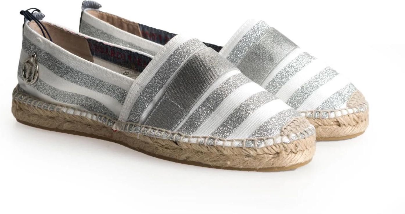 Fason: espadryle. Kolor: Białe, Szare. Materiał cholewki: Skóra naturalna, Tkanina. Przeznaczenie: uniwersalne. Rodzaj: Damskie. Sezon: na cały rok. Marka: Trussardi | Numer artykułu: 79A90602 | Materiał : Skóra naturalna | Kolor : Srebrny | Styl: | Rozmiar: 36