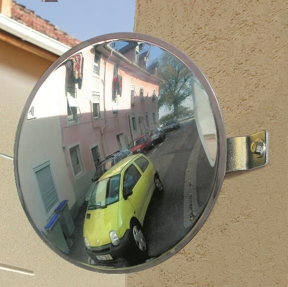 Lustro garażowe: Wyjazd z Garażu, Pomoc przy Parkowaniu Proste i ekonomiczne rozwiązanie w przypadku, kiedy zastosowanie lustra drogowego nie jest obowiązkowe. – odległość między kierowcą a lustrem powinna wynosić do ok. 2 metrów – wymiar lustra średnica 300mm – przy wyjeździe z garażu zaleca się montaż luster z obu stron – lustro może służyć również jako pomoc przy parkowaniu samochodów na ograniczonej powierzchni – powierzchnia części optycznej wykonana z tworzywa Polymir jest nietłukąca, odporna na uderzenia i nieodkształcalna – lustro dostarczane z ruchomym uchwytem, które umożliwia ustawienie lustra pod dogodnym kątem – gwarancja na powierzchnię: 3 lata