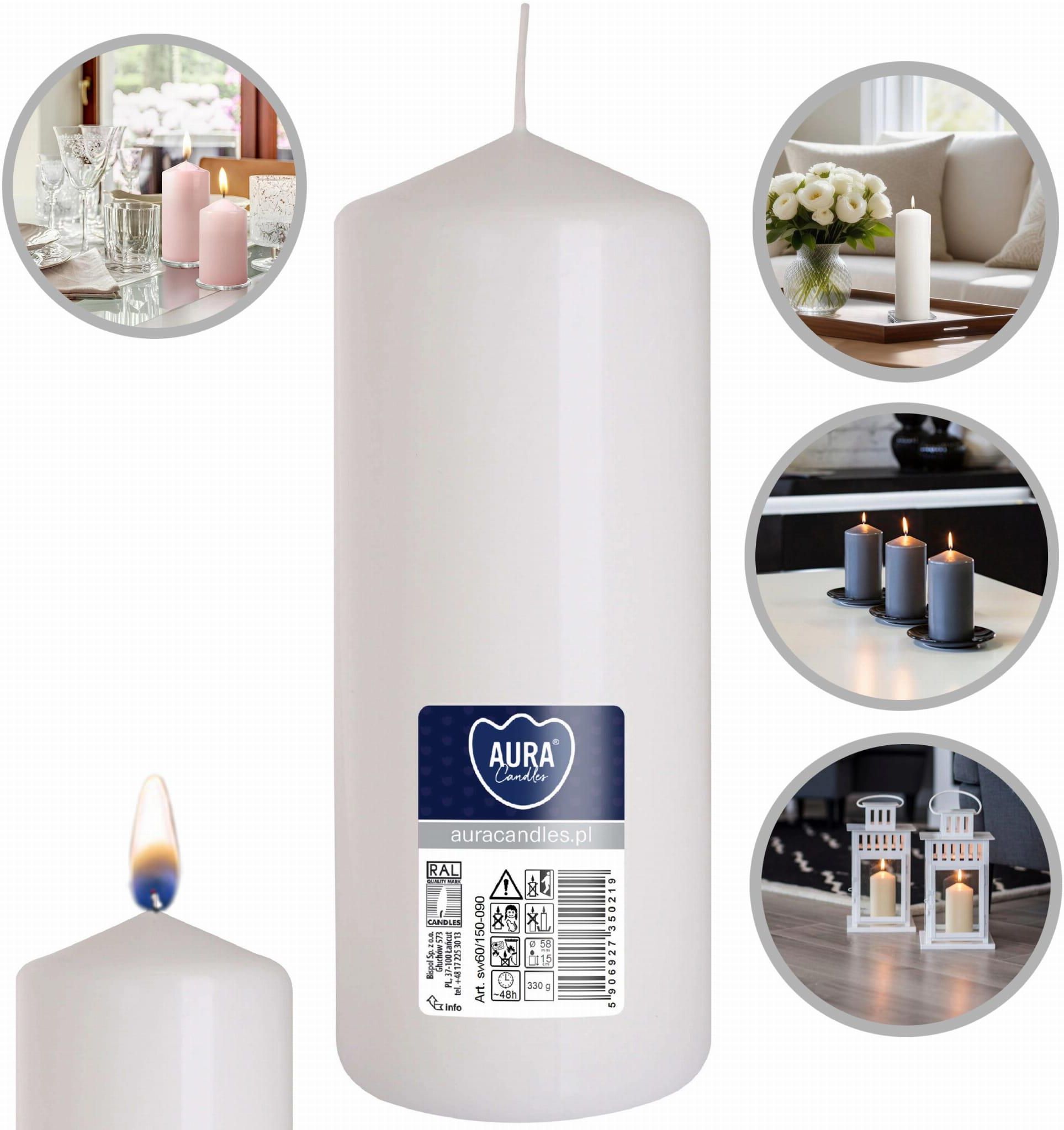 • AURA Świeca Walec Biała 48h sw60/150-090