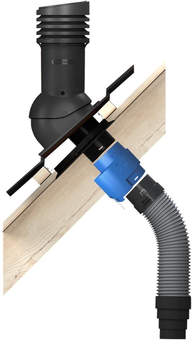 BANDLOO EVO DN150mm Zestaw komina wentylacyjnego z adapterem Ruroflex KLIK DN150 i skraplaczem wodnym kondensatu ⌀150 mm Zestaw z kominem wentylacyjnym EVO DN150mm to kompleksowe, nowoczesne rozwiązanie wentylacyjne, które łączy funkcjonalność, estetykę i innowacyjną technologię. Jego głównym celem jest zapewnienie optymalnej cyrkulacji powietrza w budynku oraz skuteczne zarządzanie skroplinami powstającymi w systemie wentylacyjnym. Dzięki idealnemu dopasowaniu wszystkich elementów, zestaw jest gotowy do instalacji bez konieczności stosowania dodatkowych akcesoriów, co czyni go niezwykle praktycznym i oszczędzającym czas rozwiązaniem. Każdy element zestawu wykonany jest z wysokiej jakości materiałów, które gwarantują długą żywotność oraz odporność na niekorzystne warunki atmosferyczne. Przemyślane szczegóły, takie jak przedłużony odpływ kondensatu, ukryte śruby montażowe oraz łatwa możliwość demontażu, ułatwiają nie tylko instalację, ale również późniejszą konserwację systemu. Zestaw idealnie sprawdzi się w budynkach mieszkalnych, komercyjnych i przemysłowych. Komin wentylacyjny EVO DN150mm Średnica wewnętrzna: 150 mm Wysokość całkowita: 630 mm Szerokość komina: 229,5 mm Wysokość komina: 490 mm Wysokość końcówki komina: 183 mm Zakres temperatur roboczych: od -40°C do +90°C Materiał: Wysokiej jakości, odporny na promieniowanie UV plastik polipropylenowy (PP) Wbudowana poziomnica: Umożliwia precyzyjne wyrównanie podczas montażu Przedłużony odpływ kondensatu: Efektywne odprowadzanie wilgoci Ukryte śruby mocujące: Dla estetycznego wyglądu Boczne przyciski: Ułatwiają demontaż podczas prac konserwacyjnych Regulowany kąt nachylenia: od 0° do 50° Adapter Ruroflex KLIK DN150 Średnica przyłącza: DN150 mm Materiał: Wysoce elastyczny elastomer termoplastyczny (TPE) Elastyczna konstrukcja: Dostosowuje się do różnych instalacji Łatwy montaż: Szybkie łączenie i rozłączanie dzięki innowacyjnemu systemowi KLIK System KLIK: Zapewnia szczelne i trwałe połączenie bez dodatkowych narzędzi Skraplacz wodny kondensatu DN150 Pojemność zbiornika: 1300 ml, z funkcją stopniowego odparowywania skroplin do otoczenia Możliwość podłączenia wężyka (w zestawie) do odprowadzania nadmiaru skroplin Kompaktowe wymiary (224 x 175 x 205 mm) umożliwiające montaż w konstrukcji dachu Dedykowany do systemów WiroVent®EVO 150, WiroVent®PRO 150 Przygotowany do podłączenia rur elastycznych U81R, U6106 Montaż na CLICK do rury kątowej kominka, z odpływem skierowanym ku dołowi Odporny na warunki atmosferyczne Zalety zestawu Szybki i łatwy montaż dzięki systemowi KLIK i ukrytym śrubom Efektywna gospodarka skroplinami dzięki skraplaczowi kondensatu Wysoka odporność na warunki atmosferyczne dzięki wysokiej jakości materiałom Przedłużony odpływ kondensatu zapobiega osadzaniu się wilgoci w systemie Łatwa konserwacja dzięki bocznym przyciskom umożliwiającym łatwy demontaż Regulowany kąt nachylenia dla różnych typów dachów Estetyczny wygląd dzięki ukrytym śrubom montażowym Kompatybilność z różnymi średnicami rur dzięki adapterowi Ruroflex KLIK Zestaw zawiera Komin wentylacyjny EVO DN150mm Adapter Ruroflex KLIK DN150 Skraplacz wodny kondensatu DN150 Pasujące dachówki Braas - Frankfurter Benders - Mecklenburger ProDach - Doppelrömer