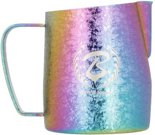 Dzbanek na mleko Barista Space Ice Grain Multicolor 450 ml precyzyjny dzbanek do ubijania mleka ✔️ wykonany z wysokiej jakości stali nierdzewnej 304 ✔️ trwała powłoka teflonowa ✔️ precyzyjny dzióbek dla idealnej latte art ✔️ wygodny uchwyt ✔️ unikalny stylowy design ✔️ pojemność 450 ml Precyzyjny czajniczek z tęczowym wzorem Czajniki popularnej marki Barista Space są wykonane z cienkiej stali nierdzewnej 304. Dzięki temu czajniczek jest bardzo lekki i waży zaledwie 210 gramów. Precyzyjnie wykonany uchwyt jest bardzo wygodny w trzymaniu, pozwalając na precyzyjne kontrolowanie poszczególnych ruchów dłoni, gdy właśnie rysujesz misterne latte art w swoim cappuccino. Kolejną wielką zaletą jest ostry dzióbek na czajniczku, który został stworzony z myślą o idealnie precyzyjnym i czystym latte art. Całości dopełnia unikalna tęczowa konstrukcja, której teflonowa powłoka zapewnia nie tylko piękny wygląd, ale także wysoką stabilność i trwałość.