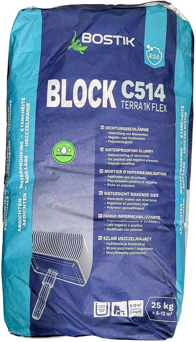 BOSTIK BLOCK C514 TERRA 1K FLEX szlam uszczelniający 25kg BOSTIK BLOCK C514 TERRA 1K FLEX jest jednoskładnikową zaprawą mineralną. Tworzy wodoszczelną powłokę zabezpieczającą przed wilgocią, wodami gruntowymi itp. Po pełnym utwardzeniu uszczelnienie staje się odporne na mróz i wodę morską. Nie …