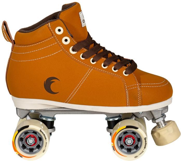 Marka Chaya to relatywnie nowy gracz na rynku wrotek, co nie oznacza, że stoją za nią ludzie bez doświadczenia. Jest ona bowiem dywizją niemieckiej firmy Powerslide, która do jej współtworzenia ściągnęła wiele talentów z wrotkarskiego świata, jeżdżących zarówno w skateparkach, jak i współzawodniczących w roller derby. Od samego początku w projekcie bierze też udział Kenneth Dedeu – dyrektor kreatywny w Powerslide, fotograf, designer, utalentowany rolkarz oraz wrotkarz (ksywka Ragnaroll). Jak widać, podstawy są solidne – a podejście „nic na pół gwizdka” zaowocowało naprawdę solidną ofertą wrotek. Jednym z nowych modeli do jazdy rekreacyjnej oraz tańca są Chaya Cappuccino – wyróżniające się świetną stylistyką i przystępną ceną wrotki. To ulepszony wariant bazowych modeli Vintage, posiadający tę samą konstrukcję buta, ale wyższej jakości podwozie i pozostałe części. Wrotki mają komfortowy but o średniej wysokości. Charakteryzuje się on średnim stopniem sztywności, dając dobre wsparcie stawu skokowego, jednocześnie nie ograniczając ruchów. Kostka jest nieco bardziej uwolniona, niż w wyższych modelach Melrose. Pianki ukształtowane anatomicznie dają wysoki poziom komfortu i pewnie trzymają piętę w miejscu. Pod stopą spoczywa wkładka z pianki EVA, a podeszwa buta wykonana jest ze sztywnego tworzywa wzmocnionego włóknem szklanym. Posiada ona także wzmocnienie (torsion bar) dla poprawy przeniesienia energii odepchnięcia na koła. Plate, czyli podstawa wrotek oraz trucki, zrobione są odlewanego (casted) aluminium A356 – są bardzo wytrzymałe przy zachowaniu niskiej wagi. To poziom wyżej niż kompozytowe plate, które dostajemy w modelach Sketch oraz Voyager. Same trucki mają szerokość 105 mm (razem z osiami), co daje bardzo dobrą zwrotność. Jeżeli chodzi o elementy eksploatacyjne, Chaya zaoferowali świetny kompromis pomiędzy ceną a jakością. Gumki do trucków (cushions) wykonane są z poliuretanu o twardości 88A, a stoper z nieco twardszego wariantu tego tworzywa. Koła zastosowane w Voyager mają średnicę 59 mm i duży, ażurowy rdzeń ze sztywnego tworzywa, co przekłada się na ich niską wagę. Poliuretan, którym są pokryte, ma twardość 78A - daje to wysoką wygodę jazdy oraz świetną przyczepność kół. Łożyska Wicked ABEC 7 ze stali węglowej dają świetne toczenie. Wrotki Chaya Cappuccino są stylowe, wygodne, lekkie oraz wytrzymałe – producent testował je dla wagi użytkownika dochodzącej do 100kg. To klasyczny model, który sprawdzi się nie tylko dla osób wchodzących dopiero w świat jazdy na wrotkach, ale i bardziej doświadczonych, które poszukują wygodnego sprzętu do czystej, nieskrępowanej zabawy.