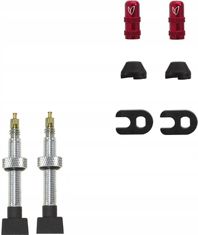 Zawory bezdętkowe Caffélatex 40MM Effetto Mariposa Specjalny zawór Caffélatex jest niezastąpionym dodatkiem do każdego koła bezdętkowego. Dzięki modułowej podstawie zawór łatwo dopasowuje się do każdej felgi. Dostępne w długościach 40, 70 i 100 mm. Specyfikacja Możliwość dopasowania do dowolnego profilu obręczy za pomocą dołączonego adaptera stożkowego Lekki i niezawodny korpus aluminiowy Dostosowanie Dzięki załączonemu adapterowi stożkowemu, Caffélatex Tubeless Valve jest kompatybilny jako zamiennik dla najpopularniejszych zaworów typu Presta i Schrader: Na płaskich felgach typu Presta (średnica otworu zaworu: 6,5 mm), do zapewnienia doskonałej szczelności powinna wystarczyć płaska podstawa zaworu gumowego. Jednak gdy mamy do czynienia z bardziej wypukłymi felgami, stożkowy adapter zapewni nam odpowiednie dopasowanie. W przypadku felg typu Presta z szerszym (> 6,5 mm) otworem wewnętrznym, lub gdy stosujemy na felgach Schradera (średnica otworu zaworu: 8,5 mm), zaleca się zamontowanie adaptera stożkowego na zaworze przed włożeniem go do obręczy, aby zapewnić maksymalne dopasowanie. Stożkowy łącznik ułatwia montaż dzięki możliwości dopasowania do różnych profili obręczy. Jednak w niektórych przypadkach płaska podstawa działa lepiej niż podstawa stożkowa jak i odwrotnie. Lekkość i niezawodność Zawory wykonane są ze stopu aluminium, który zapewnia elastyczność materiału (zawór najpierw będzie się wyginał, dopiero później pęknie). Dzięki połączeniu lekkości i niezawodności z pewnością sprosta wysokim wymaganiom użytkownika. Oryginalny wygląd Zawory Effetto Mauriposa posiadają czerwono-anodowaną aluminiową nakładkę, która podkreśla ich jakość i sprawia, że są dobrze rozpoznawalne nawet po zamontowaniu. Usuwalny rdzeń zaworu Ta funkcja umożliwia łatwą i szybką wymianę oraz dopasowanie mechanizmu zaworów bezdętkowych Caffélatex Valve. W komplecie z akcesoriami Każde opakowanie składa się z dwóch zaworów bezdętkowych Caffélatex, dwóch nakładek z anodyzowanego aluminium, dwóch gumowych łączników stożkowych, dwóch nakrętek, dwóch pierścieni uszczelniających mechanizmu Presta / klucza przedłużającego zawór.