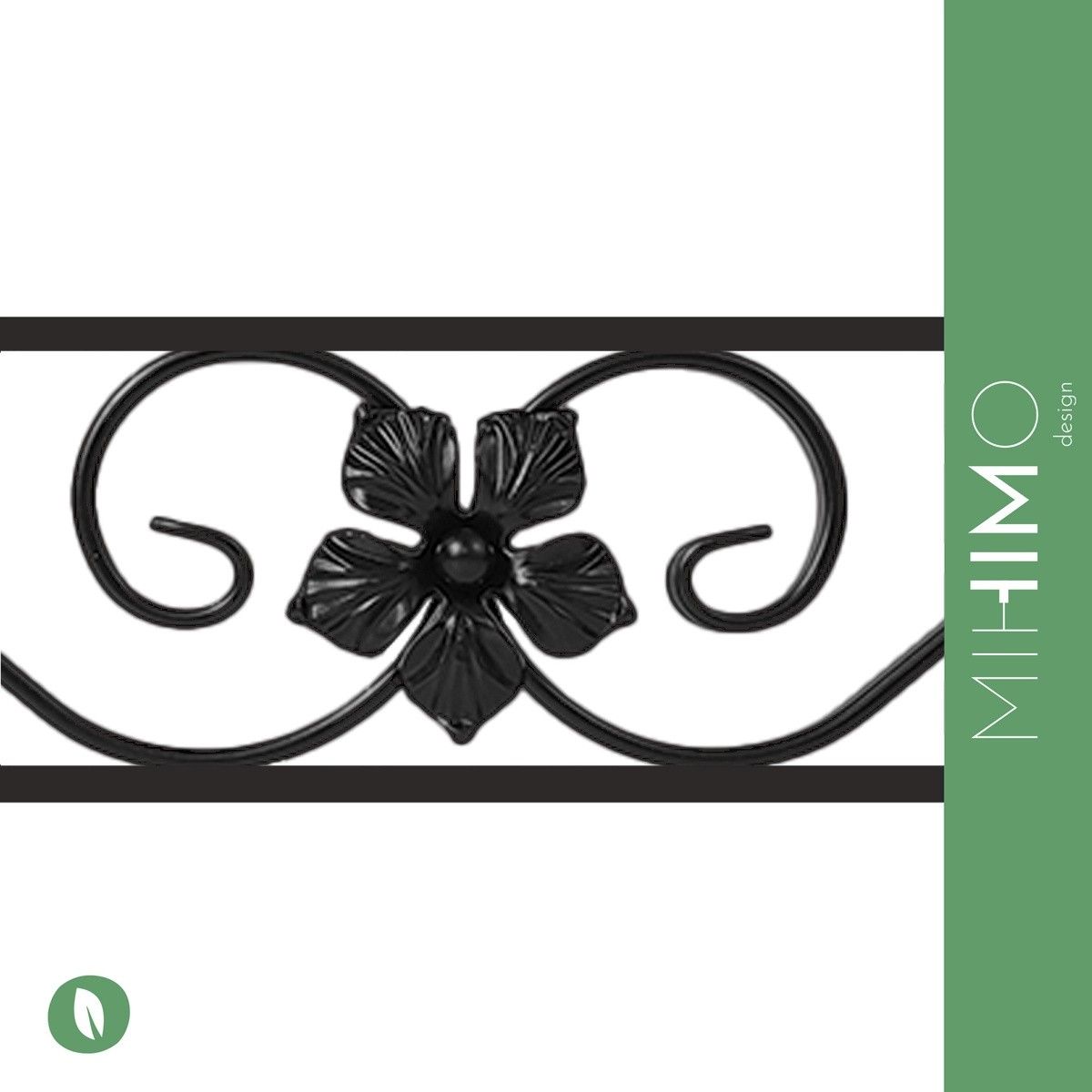 Dekoracyjna bariera okienna w kwiatowy wzór, chroniąca rośliny na parapecie. Wykonana ze stali malowanej proszkowo, regulowana szerokość (76–176 cm). Łatwa instalacja, idealna do domów i mieszkań.