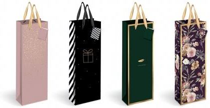 Torebka na butelkę GOLD:wymiary: 13x36x8 cm matowe wykończenie, kilka wzorów ze złotymi zdobieniami, wzmocniony sztywny spód, uchwyt z atłasowej wstążki i bilecik Uwaga! Wzór wysyłany według dostępności - bez możliwości wyboru. Cena dotyczy 1 sztuki. Kraj produkcji: Polska Ostrzeżenia: N/A Producent/osoba odpowiedzialna za bezpieczeństwo produktuINTERDRUK S.A.Łucka 1500-842 Warszawainfo@interdruk.com.pl+48 22 486 60 00