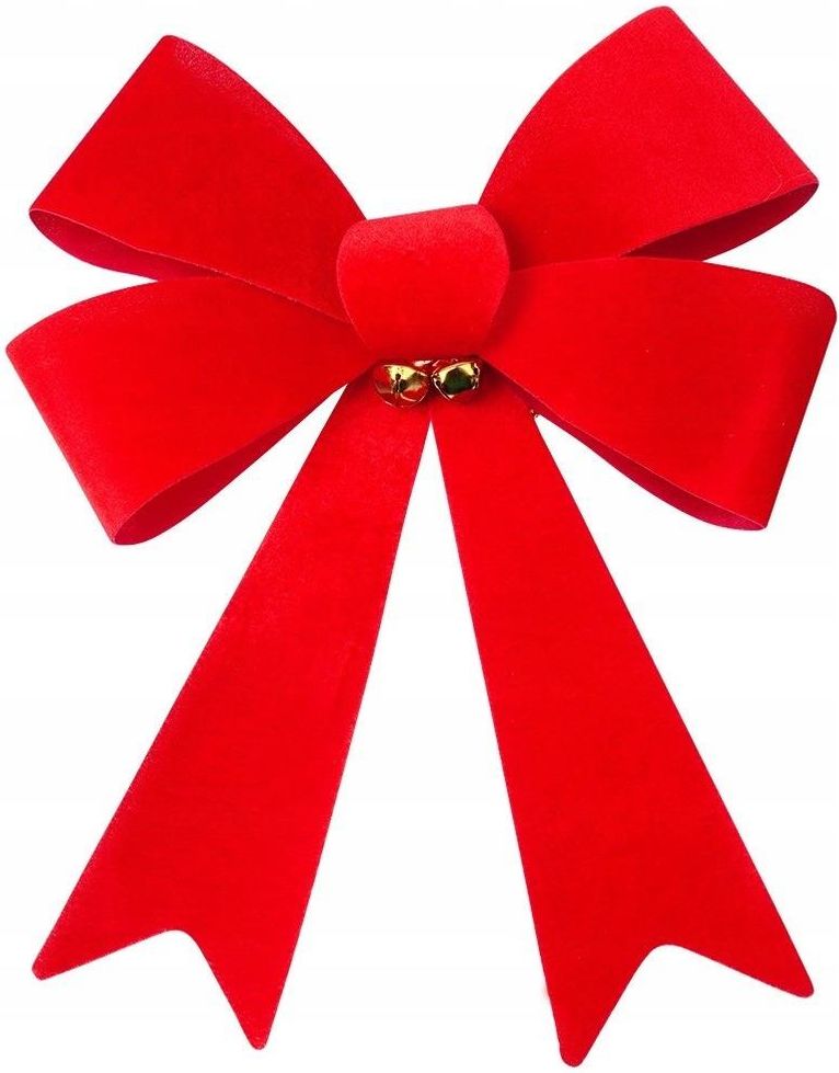 Kokarda dekoracyjna świąteczna welurowa 35x46 cm Dekoracyjna kokarda świąteczna - Elegancka kokarda dekoracyjna o wymiarach 35 x 46 cm. Piękne uzupełnienie świątecznych dekoracji. Welurowe wykończenie i złote dzwoneczki - Kokarda wykonana z miękkiego, przyjemnego w dotyku weluru w kolorze …