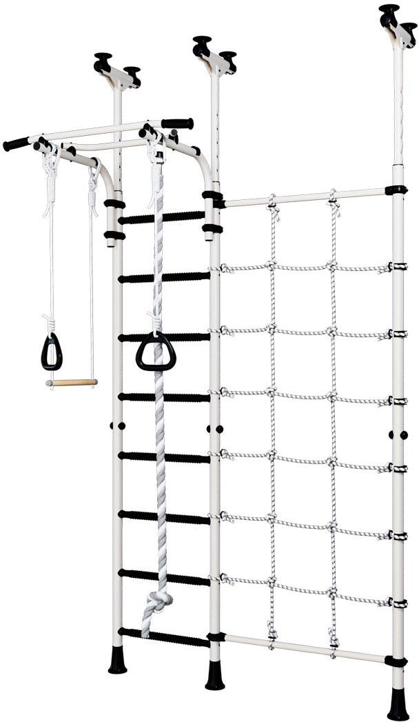 Merkury 3 drabinka gimnastyczna Biało-szara Najważniejsze cechy produktu posiada certyfikat Unii Europejskiej, atest TÜV Nord testowana fabrycznie obciążeniem 200kg trwałe materiały: metalowa konstrukcja + proszkowa farba ogumione antypoślizgowe szczeble z masującymi wypustkami system montażu rozporowego nie niszczący ścian rozmaite akcesoria gimnastyczne dla dzieci w zestawie estetyczny wygląd, dopracowana w szczegółach konstrukcja forma konstruktora pozwala wydłużyć drabinkę do 325 cm Dane Techniczne sposób montażu: rozporowy wysokość: 227-280 cm wymiary zestawu: 75,5 cm (głębokość) x 157 cm (szerokość) szerokość drabinki: 53 cm szerokość słupka: 87,6 cm dopuszczalne obciążenie 100 kg wyposażenie: drążek przesuwny, kółka, lina, metalowa drabinka, słupek rozporowy z siatką, trapez Usługa montażu dostępna w całej Polsce O PRODUKCIE Szczeble gimnastyczne z powłoką Anty-Slip i wypustkami Drabinki gimnastyczne cechują się wyjątkowym pokryciem szczebli, które oprócz standardowego ogumienia antypoślizgowego, mają również wypustki masujące ręce i nogi dziecka podczas wspinania. Efekt masowania jest szczególnie ważny we wczesnym etapie rozwoju dziecka - pomaga rozwijać małą motorykę i zapobiega płaskostopiu. Bezpieczne wykończenie, opływowe kształty i zaślepki Produkty wykonane są z największą starannością i przemyślane w każdym szczególe. Konstrukcja łączy w sobie elementy metalowe, plastikowe i z drewna. Wszystkie mocowania - śruby i nakrętki - są schowane pod plastikowe zaślepki, zakończenia metalowe mają równe, gładkie powierzchnie. Akcesoria gimnastyczne są zawieszane w klips-prowadnicy co zapobiega ich ślizganiu się po drabince. Drabinka zyskuje estetyczny wygląd i dobrze prezentuje sięw pokoju. Drabinka rozporowa - szybki montaż bez wiercenia otworów Absolutna łatwość montażu drabinki rozporowej pozwala bezproblemowo przenieść ją w przyszłości w inne miejsce. System montażu rozporowego pozwala uniknąć wiercenia dziur w ścianach i umożliwia zamontowanie drabinki w pomieszczeniach o wysokości od 227 cm do nawet 325 cm po wydłużeniu drabinki dostawką na dodatkowe 2 szczeble. Wersja rozporowa dopasowuje się do wysokości mieszkania i pozwala maksymalnie wykorzystać całą przestrzeń w pokoju, którą przeznaczyliśmy na ten sprzęt sportowy. Drabinka styka się z sufitem czterema elementami o średnicy 8 cm. DOSTĘPNA KOLORYSTYKA DRABINEK