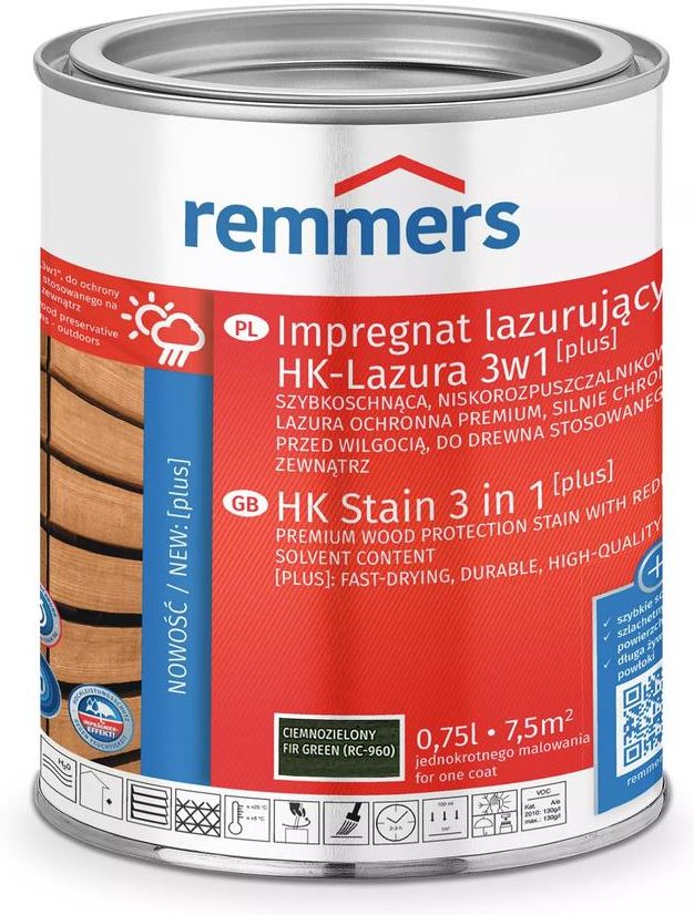 Remmers HK-Lazura 3w1 Plus Ciemnozielony 0,75L impregnat do drewna zewnętrznego Koszalin
