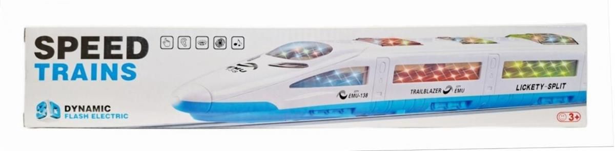 Biało-niebieski pociąg z efektem świetlnym LED i dynamicznym ruchem. Zapakowany w kartonowe pudełko. Zabawka przeznaczona dla dzieci od lat 3. Produkt działa na baterie typu AA. Baterie nie są załączone do zabawki. Wiek: 3+Producent/osoba odpowiedzialna za bezpieczeństwo produktuKUKURYKU Julia PogorzelskaEKONOMICZNA 442-271 CZĘSTOCHOWAoffice@kukuryku.co34 340 11 50