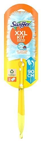 Swiffer XXL Zestaw do usuwania kurzu: 1 rączka + 2 miotełek do kurzu DE Pożegnaj się z kurzem, brudem i włosami. Zestaw do usuwania kurzu Swiffer XXL doskonale przyciąga i zatrzymuje kurz, włosy oraz alergeny roztoczy. Świetnie sprawdza się też przy sprzątaniu kociej i psiej sierści dzięki tysiącom puszystych włókien pokrytych cienką powłoką. Nie straszne mu są również prace na wysokościach. Teleskopową rączkę Swiffer XXL można rozsunąć na długość 90 cm, co sprawia, że jest w stanie sięgnąć wysoko, nisko i dotrzeć do ciasnych miejsc, a tym samym zapewnić dokładniejsze czyszczenie w porównaniu z innymi miotełkami do sprzątania. Teleskopowa rączka ma obrotową końcówkę, którą można przestawiać i zablokować w 4 różnych pozycjach, by dokładnie wyczyścić powierzchnie z załamaniami, takie jak drewno, meble, rogi szafek czy listwy podłogowe Dociera nawet do trudno dostępnych miejsc, precyzyjnie czyszcząc grzejniki, żaluzje, deski rozdzielcze samochodów i sprzęt elektroniczny Miotełki do kurzu Swiffer składają się z włókien o unikalnej budowie, które dostosowują swój kształt w taki sposób, by dotrzeć do wszystkich zakamarków i pomóc Ci pozbyć się kurzu i włosów z praktycznie każdej powierzchni bez rozprzestrzeniania ich po domu. Przydatne wskazówki: Doskonale nadaje się do zbierania sierści, którą zwierzęta domowe stale gubią. Świetnie spisuje się również wtedy, gdy któryś z domowników ma alergię na kurz. Działa tak dobrze, że możesz nawet polubić sprzątanie. Miotełki do kurzu Swiffer należy stosować z rączką marki Swiffer. Cechy i właściwości: Przyciąga i zatrzymuje nawet 3 razy więcej kurzu i włosów niż zwykła miotełka do sprzątania Zestaw startowy: 1 rączka XXL + 2 miotełek do kurzu Przed użyciem potrząśnij miotełką i upewnij się, że jest puszysta, by mogła skutecznie przyciągać oraz zatrzymywać kurz i włosy pod każdym kątem Ergonomiczna rączka rozsuwa się na długość nawet 90 cm i wygodnie leży w dłoni Tysiące puszystych włókien przyciągają i zatrzymują cząsteczki kurzu oraz włosy, które zwykłe miotełki do sprzątania przenoszą tylko z miejsca na miejsce Nadaje się do czyszczenia praktycznie wszystkich suchych powierzchni i nie pozostawia osadu Doskonale nadaje się do sprzątania sierści zwierząt domowych Miotełki do kurzu są wykonane z syntetycznych włókien pochodzących w 33% z recyklingu