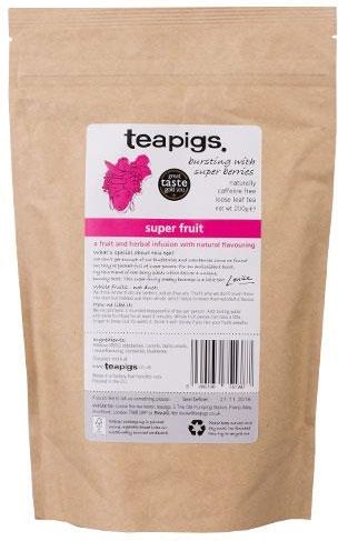 Herbata Owocowa Teapigs Super Fruit Sypana 200g Na wstępie chcemy Ci bardzo podziękować za zainteresowanie naszą ofertą. Jeśli zawsze kupujesz produkty oryginalne, pochodzące z legalnych źródeł to dobrze trafiłeś bo mamy dla Ciebie świetną ofertę. Teapigs Super Fruit Herbata Sypana 200g Producent: Teapigs EAN: 5060136751387 Rodzaj herbaty: Owocowa Sypana / W saszetkach: Sypana Opakowanie: 200 g Składniki: Hibiskus, czarny bez, porzeczki, czarne porzeczki, aromat naturalny, żurawina, jagoda Superpyszna i owocowa! Niczym placek owocowy w filiżance! Bezpłciowe, ładnie pachnące ale zupełnie nie smakujące herbaty to już historia! Dzięki Teapigs, producentowi herbat, który pakuje do swoich herbat możłiwie największe kawałki owoców i całe jagody (w przypadku tej herbaty są to całe owoce żurawiny i jagody), dzięki temu dostajesz to czego spodziewasz się po owocowej herbacie, mocno owocowy, konkretny smak, bez sztucznych dodatków. Jak smakuje? Superpysznie i owocowo! Niczym placek owocowy w filiżance! Pij ją gdy czujesz się Spowolniony i bez ochoty na cokolwiek. Antyoksydanty z owoców pozwolą Ci się pozbyć słynnego syndromu „Zdeptanego jeża” czy po prostu zwykłego zmęczenia. NIE zawiera kofeiny Pamiętaj, żadna tania herbata z pyłu herbacianego nie zafunduje Ci takich doznań smakowych jak herbaty z wyselekcjonowanych całych liści Przygotowanie Zalej gorącą wodą Parz przez około 3 minuty - Saszetka - 1 na osobę, parz przez 3 minuty. - Herbata luzem - 2 łyżeczki na osobę, parz przez 3 minuty. Herbata być może wymaga więcej cierpliwości przy parzeniu niż herbaty ekspresowe, ale jej smak zdecydowanie Ci to wynagrodzi z nawiązką!