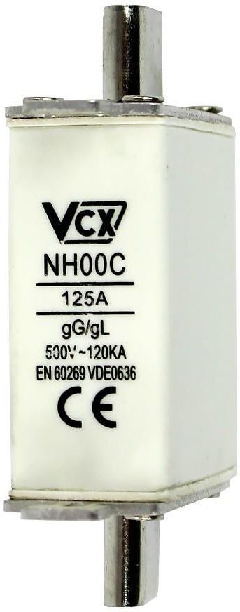 Bezpiecznik mocy przemysłowy zwłoczny WTNH00C 35A VCX. Oferowany w naszym sklepie elektrycznym model charakteryzuje się kompaktową budową i rozmiarem NH00C. Jest mniejszy i lżejszy od standardowych bezpieczników mocy przemysłowych. Pomniejszone wymiary korpusów nie utrudniają stosowania wkładek topikowych przemysłowych zwłocznych kompaktowych serii WTNH00C w standardowych podstawach. Oferowane bezpieczniki mocy charakteryzuje prąd znamionowy 35A. Model ten przeznaczony jest do pracy z napięciem 500V. Wkładki topikowe przemysłowe zwłoczne kompaktowe to wkładki o charakterystyce wyzwalania gG (zwłoczne). Wkładki topikowe przemysłowe 35A przeznaczone są do ochrony instalacji elektrycznych przed skutkami zwarć i przeciążeń. Tego typu bezpieczniki mocy są mocowane w podstawach bezpiecznikowych przy pomocy izolacyjnego uchwytu. Uwaga! Zdjęcie przykładowe!