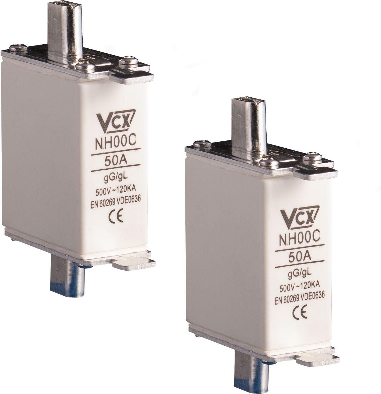 Bezpiecznik mocy WTNH00C 50A VCX. Wkładki topikowe przemysłowe zwłoczne kompaktowe serii WTNH00C to wkładki o charakterystyce wyzwalania gG (zwłoczne). Wkładki topikowe przemysłowe przeznaczone są do ochrony instalacji elektrycznych przed skutkami zwarć i przeciążeń. Tego typu bezpieczniki mocy są mocowane w podstawach bezpiecznikowych przy pomocy izolacyjnego uchwytu. Oferowany w naszym sklepie elektrycznym model charakteryzuje się kompaktową budową i rozmiarem NH000. Jest mniejszy i lżejszy od standardowych bezpieczników mocy. Pomniejszone wymiary korpusów nie utrudniają stosowania wkładek topikowych przemysłowych zwłocznych kompaktowych serii WTNH00C w standardowych podstawach. Oferowane bezpieczniki mocy charakteryzuje prąd znamionowy 50A. Model ten przeznaczony jest do pracy z napięciem 500V.