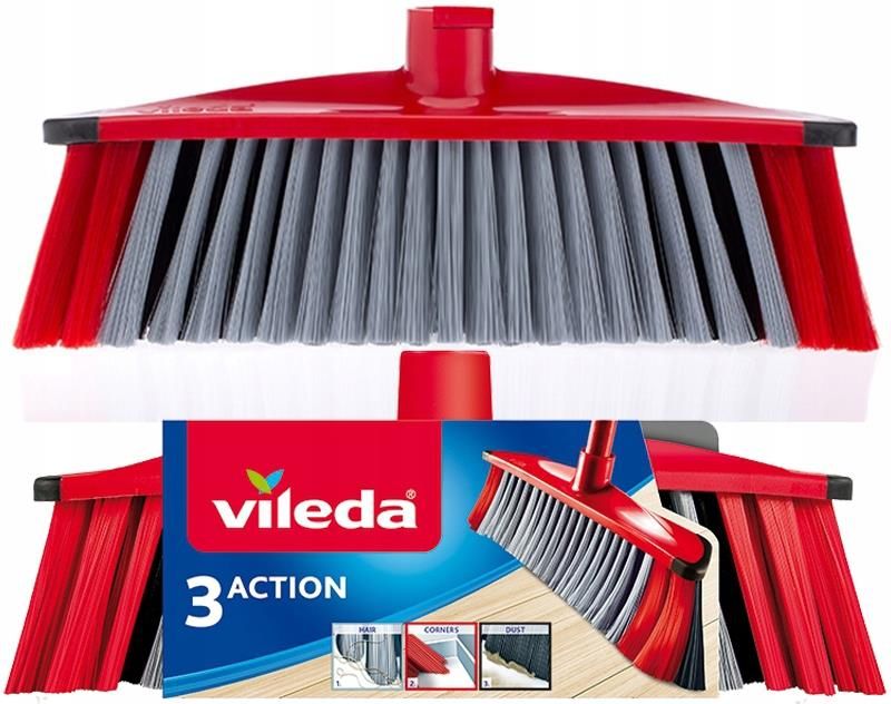 Wkład do szczotki Vileda 3Action Wkład Vileda 3Action Wkład 3Action zapewnia doskonałe czyszczenie za jednym razem. Dzięki potrójnemu włosiu bez wysiłku usuniesz nawet drobne cząsteczki brudu. Dzięki grubemu, zewnętrznemu włosiu bez problemu dotrzesz również do zabrudzeń w narożnikach, łączeniach i krawędziach. Gumowe odbojniki chronią meble i podłogi przed zarysowaniami. Specyfikacja Doskonale zbiera kurz, włosy i sierść Wykonana w technologii ATF - jest niezwykle lekka Specjalnie wyprofilowany kształt, zapewnia dotarcie do każdego kąta i narożników Gumowe zakończenie chroni ściany i meble Posiada trzy rodzaje włókien Zbiera nawet najdrobniejszy kurz Z łatwością zbiera włosy i drobiny Szczotka do zamiatania 3Action nie posiada drążka, kij do szczotki można dokupić osobno Czarne włosie Niezawodnie zbiera wszystkie cząsteczki kurzu z twardych podłóg. Dzięki temu główka miotły jest idealna do szybkiego czyszczenia na sucho wszystkich pomieszczeń bez dywanu. Szare włosie Aktywne szare włosie bezpiecznie zgarnia włosy. Jednym ruchem można zamieść zarówno bardzo drobne cząsteczki brudu, jak i duże ilości widocznego kurzu i kłaczków.
