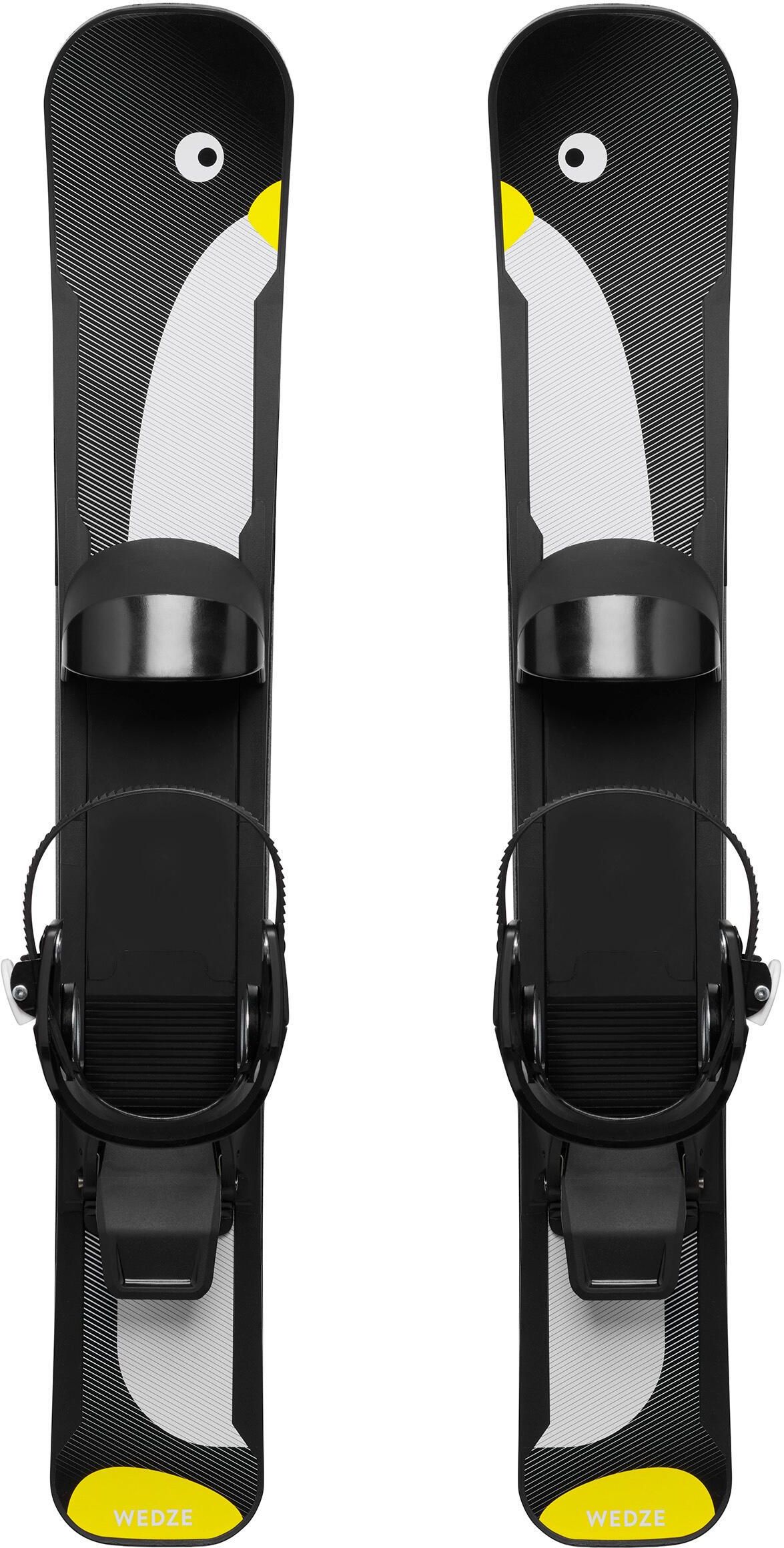 Łatwość użytkowania, która zachęci dzieci do jazdy na nartach. Używać ze śniegowcami dla większego komfortu. Narty z krawędziami: umożliwiają bezpieczną naukę poruszania się po śniegu. Wiązania regulowane przy pomocy zębatki: kompatybilne ze śniegowcami. Metalowe krawędzie pod butem pozwalają odpowiednio kierować przyczepnością. System zapobiegający odjeżdżaniu nart do tyłu w płaskim terenie.