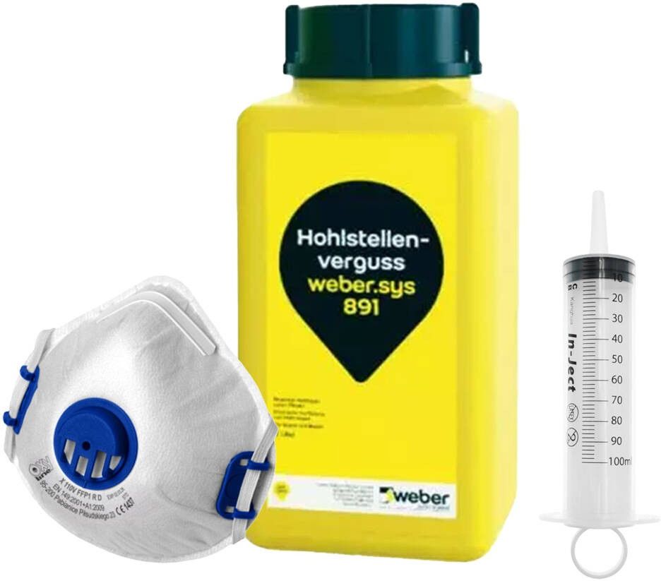 Zestaw Weber.sys 891 | 1 Litr Płyn do wypełniania pustek, pęknięć i wzmacniania podłoży Uratuj podłogę bez kosztownego skuwania Weber.sys 891 to profesjonalna ciecz o niskiej lepkości na bazie dyspersji kopolimeru akrylowego. Dzięki doskonałym właściwościom penetrującym, idealnie nadaje się do uszczelniania mikropęknięć w posadzkach mozaikowych i lastrykowych oraz wzmacniania ubytków w płytkach ceramicznych, tynkach i wylewkach. Zalety i zastosowanie Niska lepkość: Skutecznie wnika nawet w drobne pęknięcia. Elastyczność: Po utwardzeniu tworzy wytrzymałą, elastyczną masę (możliwość wielokrotnego nakładania). Ochrona: Zapobiega dalszemu wnikaniu wilgoci i wzmacnia spoistość powierzchni. W zestawie: Płyn 1L, strzykawka do iniekcji 100 ml oraz maska przeciwpyłowa. Specyfikacja techniczna Baza materiałowa: Kopolimer akrylowy Warunki optymalne: +23°C / 50% wilgotności Czyszczenie narzędzi: Woda (natychmiast po użyciu) Miejsce stosowania: Wewnątrz, suche powierzchnie *Przy większych pęknięciach zaleca się zastosowanie preparatu weber.prim 806.