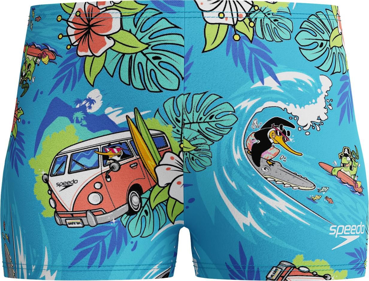 Wygodne szorty kąpielowe z kolorowym nadrukiem zostały stworzone z myślą o małych odkrywcach. Wykonane z odpornej na mechacenie tkaniny enduraflex, zachowują swój kształt i wytrzymałość na chlor dłużej niż standardowe materiały kąpielowe. • enduraflex – tkanina z recyklingu o zwiększonej odporności na chlor i doskonałej elastyczności• dłuższe od klasycznych slipów kąpielowych, bez sznurka w pasie dla bezpieczeństwaskład materiału: 80% poliamid z recyklingu, 20% elastan (creora® highclo)