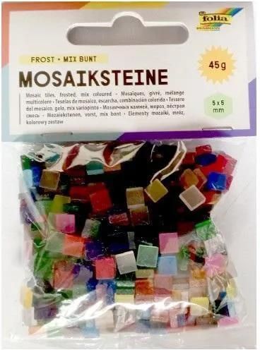 Kamyczki mrożone- 5x5 mm a 45g. ,Wykonane z kolorowej żywicy kamyki o powierzchni "mrożonej" Wymiary: 110x80 mm Opakowanie: blister