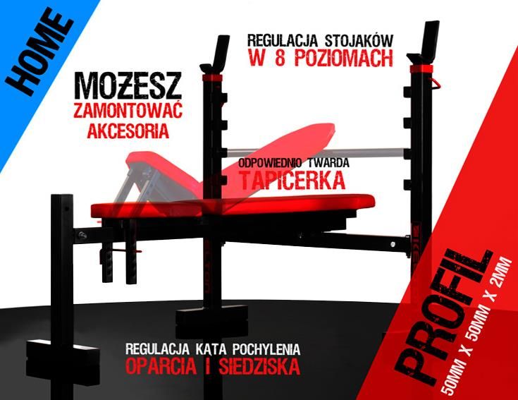 Składające się ławki nie są dla Ciebie? Słyszałeś pewnie nie raz o tym jak pod kumplem ławka się złożyła, nie chcesz żeby i Tobie coś takiego się przytrafiło? Właśnie dla Ciebie mamy odpowiednią OFERTĘ. Ławka ze stojakami. Każda inna ławka przy tym sprzęcie wygląda jak dziecięca zabawka. Gwarantujemy Ci, że nie spodziewasz się tak dużego sprzętu. Dane techniczne Parametr Wartość Gabaryty 125 cm x 50 cm x 45 cm (długość x wysokość x szerokość) Waga 20.5 kg Testowana wytrzymałość 350 kg Profil konstrukcyjny 50x50x2 mm Szerokość oparcia 28 cm Długość oparcia 81 cm Długość siedziska 31 cm Grubość pianki 3 cm Szerokość podstawy 45 cm Długość podstawy 125 cm Wysokość siedziska 50 cm Regulacja oparcia 7 stopni (0°, 15°, 30°, 45°, 60°, 75°, 85°) Regulacja siedziska 6 stopni Możliwość montażu dodatkowych akcesoriów - Kelton HOME modlitewnika HZ1 - Kelton HEAVY modlitewnik z oparciem pod klatkę HZ5 - Kelton HEAVY modlitewnik z regulacją kąta pochylenia HZ6 - Kelton HOME stacja na nogi HZ3 - Kelton HEAVY stacja na nogi HZ14 - Kelton HOME wyciąg do ławki HZ4 - Kelton HEAVY wyciąg do ławki HZ15 - Kelton HOME element do blokowania ud HZ2 * do montażu dodatkowych akcesoriów niezbędny jest zestaw w skład, którego wchodzi: pokrętło, przelotka, bolec. Co zyskujesz? Fakt Twoja korzyść Stabilna konstrukcja z profilu 50x50x2 mm. Zagwarantuje Ci bezpieczeństwo podczas treningu. Konstrukcja wytrzymała na 350 KILOGRAMÓW ciężaru. Mocne, jakościowe spawy odporne na wieloletnie użytkowanie. Dzięki temu będziesz czuł się bezpiecznie podczas treningu. Potężna podstawa ławki. Da Ci 100% poczucia bezpieczeństwa. Zapewni stabilność ławki. 8-poziomowa regulacja wysokości stojaków. Wyregulujesz ich ustawienie idealnie do wykonywanego ćwiczenia. 5-poziomowa regulacja kąta pochylenia oparcia. Będziesz mógł atakować mięśnie klaty pod różnymi kątami. Sam wybierasz odpowiednie ustawienie. Dzięki temu, zrobisz jeszcze lepszą definicję mięśni. 7-poziomowa regulacja pochylenia siedziska. Dzięki dobrze ustawionemu siedzisku, Twoja pozycja podczas treningu będzie stabilna. Ogumowane haki stojaków. Dzięki nim sztanga nie będzie się ślizgać podczas jej odkładania na haki stojaków. Zapewniają cichy trening, co często jest ważne podczas ćwiczeń w domowych warunkach. Długa belka do blokady oparcia. Da Ci 100% poczucia bezpieczeństwa, dzięki niej szybko zmienisz ustawienie oparcia. Ustawienie ławki pod kątem 85°. Da Ci możliwość ćwiczenia na barki oraz urozmaici Twój trening. Profil 50x50x2 mm, w który możesz zamontować dodatkowe akcesoria. Dzięki niemu możesz zrobić z tej ławki maszynę na nogi, ławkę Scotta. Wystarczy dokupić: stację na nogi HZ3, HZ14 lub modlitewnik HZ6, HZ1, HZ5. Grubą na 3 cm tapicerkę. Profesjonalna, odpowiednio twarda tapicerka, zapewni Ci komfort i wygodę ćwiczeń. Wyprofilowane zakończenie tapicerki. Podczas wyciskania siedząc, sztangi na tricepsa, wyprofilowane zakończenie tapicerki zapewni Ci swobodę ruchu, dzięki temu będziesz mógł poprawnie wykonać ćwiczenia, co przyniesie pożądane efekty. Gumowe nakładki i zaślepki. Dbamy o Twoje bezpieczeństwo podczas treningu oraz estetyczne wykończenia sprzętu. Każdy szczegół w Twojej ławce jest dla nas ważny. Przetestowana i zatwierdzona przez profesorów Akademii Wychowania Fizycznego w Krakowie. Masz pewność, że kupujesz sprzęt sprawdzony przez najwyższej klasy specjalistów od treningów siłowych. Lista ćwiczeń do wykonania na ławce Uwaga! By wykonać podane poniżej ćwiczenia, będziesz potrzebował jeszcze stojaków i modlitewnika! Naramienne Wyciskanie sztangi sprzed głowy Wyciskanie sztangi zza głowy Wyciskanie sztangielek Arnoldki Unoszenie sztangielek w opadzie tułowia Klatka Wyciskanie sztangi w leżeniu na ławce poziomej Wyciskanie sztangielek w leżeniu na ławce poziomej Rozpiętki ze sztangielkami w leżeniu na ławce poziomej Wyciskanie sztangi w leżeniu na ławce poziomej wąskim chwytem Przenoszenie sztangielki w leżeniu w poprzek ławki poziomej Grzbiet Podciąganie sztangielki w opadzie (wiosłowanie) Ściąganie drążka/rączki wyciągu górnego w siadzie szerokim chwytem (nachwytem) Ściąganie drążka/rączki wyciągu górnego w siadzie podchwytem Ściąganie drążka/rączki wyciągu górnego w siadzie chwyt neutralny Przenoszenie sztangi w leżeniu na ławce poziomej Podciąganie (wiosłowanie) w leżeniu na ławce poziomej Brzuch Skłony w leżeniu płasko Ramiona Triceps Biceps Uginanie ramion ze sztangą na "modlitewniku" Uginanie ramienia ze sztangielką na "modlitewniku" Uginanie ramienia ze sztangielką w siadzie w podporze o kolano Uginanie ramion ze sztangą nachwytem na "modlitewniku" Uginanie nadgarstków podchwytem/nachwytem w siadzie Wyciskanie "francuskie"sztangi w siadzie Wyciskanie "francuskie" jednorącz sztangielki w siadzie Wyciskanie "francuskie" sztangi/sztangielki w leżeniu Prostowanie ramienia ze sztangielką w opadzie tułowia Wyciskanie w leżeniu na ławce poziomej wąskim chwytem Opis produktu Zrozumiesz, na czym polega wyższość naszego Spartana Sama ławka ze stojakami musi mieć bardzo dobrze przemyślaną konstrukcji. Proponuję byś zapoznał się z paroma takimi konstrukcjami, gdyż dopiero wtedy zrozumiesz, na czym polega wyższość naszego Spartana nad podobnymi sprzętami. Pierwsza i fundamentalna sprawa to profil i konstrukcja Najlepszym ze względów wytrzymałościowych i wagowych jest profil 50x50 ze ścianką 2 mm. Właśnie jego użyliśmy do produkcji Twojej ławki! Dzięki tak mocnej i stabilnej konstrukcji ława wytrzyma 350 KILOGRAMÓW obciążenia. W początkowym okresie naszej działalności naprawialiśmy połamane i popękane ławki innych firm. Takie doświadczenia są bezcenne, właśnie dlatego wiemy jak dobrze powinien być wykonany spaw w ławce kulturystycznej. Na własne oczy przekonas